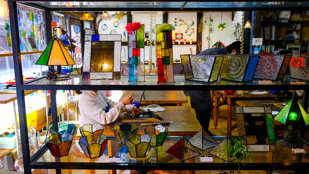 长浜的黑壁地区一直以来都以玻璃工艺闻名,在这里可以体验很多个项目,关于制作玻璃工艺品、我们这次总共参与了两种制作体验,一种是体验制作磨砂玻璃杯,另外一种是制作花色玻璃插花架、无论哪种体验都好像能让人瞬间称自己为玻璃工艺匠人。