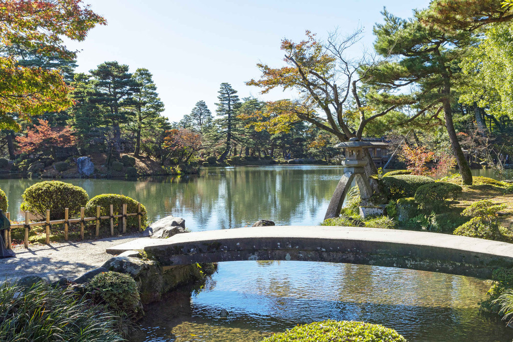 著名旅行地标云集的金泽市,无论古建还是现代艺术,处处展露着优雅的和式审美。其中最为人称道的是坐落于市中心的兼六园,它与冈山的后乐园、水户的偕乐园齐名,是日本的“三大名园”,被日本政府指定为特别名胜。据说兼六园的名字“兼六”与中国宋代诗人李格非所著的《洛阳名园记》有关,因这个园林兼备李格非所提出的“宏大、幽邃、人力、苍古、水泉、眺望”的名园条件,所以命名为兼六园。