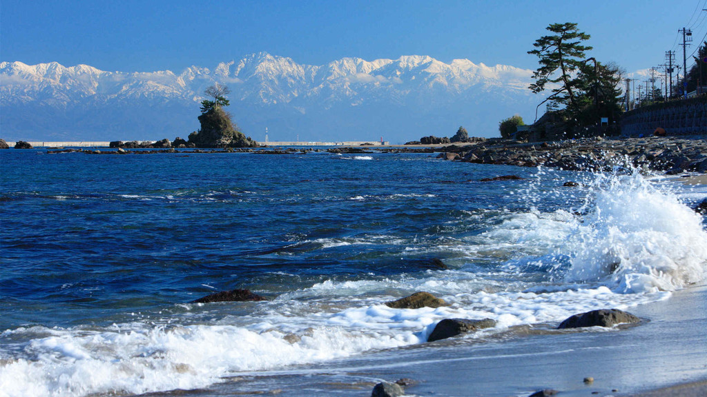 雨晴海岸是富山县高冈市北部的海岸,是能登半岛国定公园的一部分,因隔富山湾相望的是雄伟的立山连峰,形成了不可多得的绝景,被选为日本海岸百选之一。白色沙滩、绿色松林绵延的海岸线,可远眺群山的雄伟之姿。四季不同景致各异,特别是元旦期间,有很多人来这里看新年的第一个日出,热闹非凡。