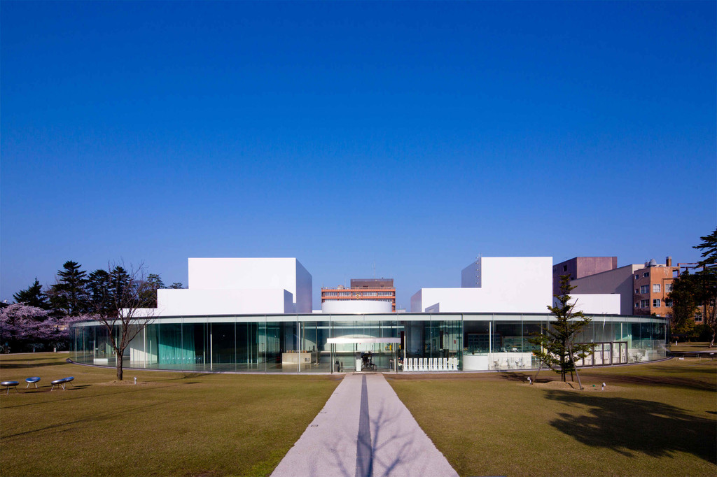 从兼六园徒步约10分钟,来到著名的金泽21世纪美术馆。圆形的外型像是UFO从天而降,所有的壁面都是玻璃,由于五个出入口都对外开放,让这座美术馆就像公园一般亲切。