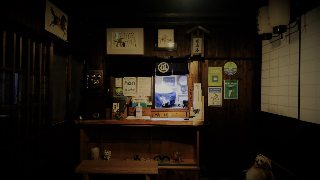 木质的建筑虽显朴素,但处处都能感受到历史。钻过门帘就是小小的前台,主人从小窗的对面招呼我,写上名字,入住完成!
