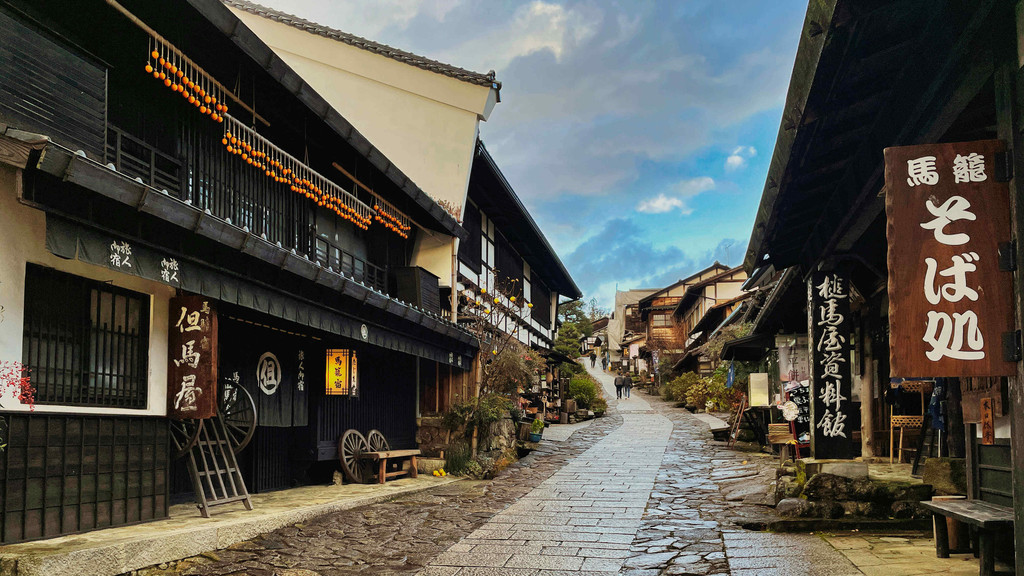 马笼宿地形险峻,日本全国罕见。江户时代所遗留下的古代街道,道路上铺有石板,两旁则是有格子窗的深咖啡色木造建筑,有民居、资料馆、茶屋、土产店等,让人遥想日本江户时代的建筑物栉比邻次,每幢都有自己的故事。