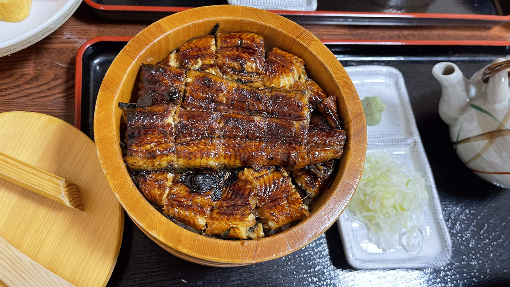 一天的寓教于乐时光很快度过,晚餐我们选择了两种特色美食,一是鳗鱼饭,二是饺子。悦奈挑选了位于车站附近,当地非常有名的百年老店八百德,这家成立于1909年的鳗鱼饭店,一定要先去打卡。在滨松车站附近就可以闻到可口的鳗鱼香,这里不愧是鳗鱼培养殖的发源地。