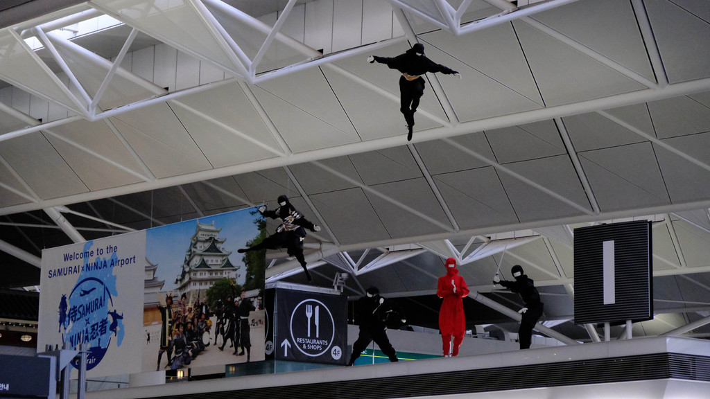 有中部国际机场的爱知县旁边的三重县是忍者之乡,处处都有关于忍者的传说和各式各样的景点,以及旅游纪念品商店。在中部国际机场内,忍者依然如影随形,送每位游客到旅途的最后一程。除此之外,机场内的美食也让人挑花了眼。先填饱肚子,还有一场日落等着她们呢。