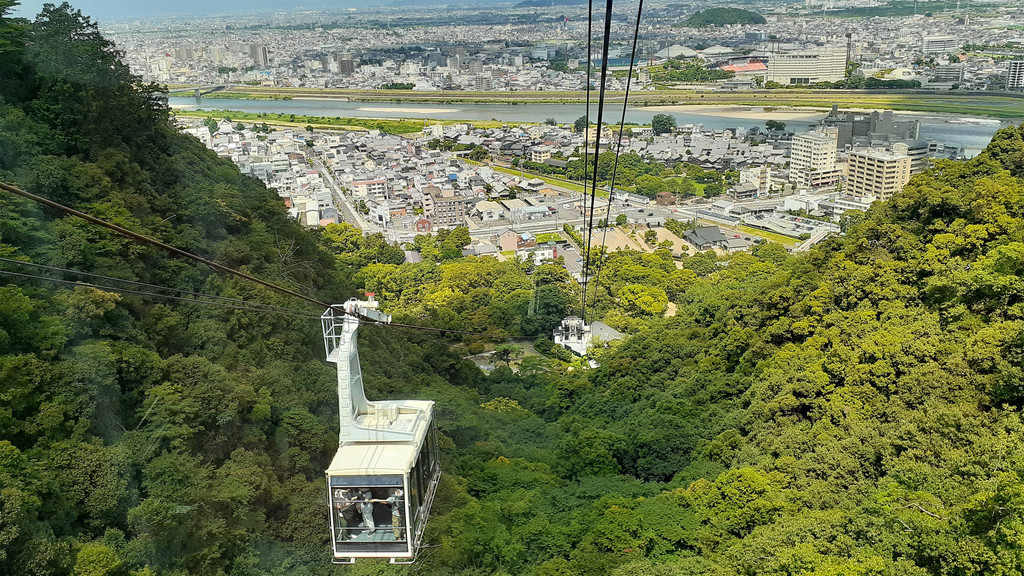 岐阜 登高望远心情大美抵达岐阜站,来到金华山乘坐缆车。这段缆车连接了岐阜公园和金华山山顶站,时长约4分钟。被原始森林覆盖的金华山和长良川的自然美景、岐阜市的街道可尽收眼底。夏季夜间也运营,吸引了很多游客前来欣赏夜景。