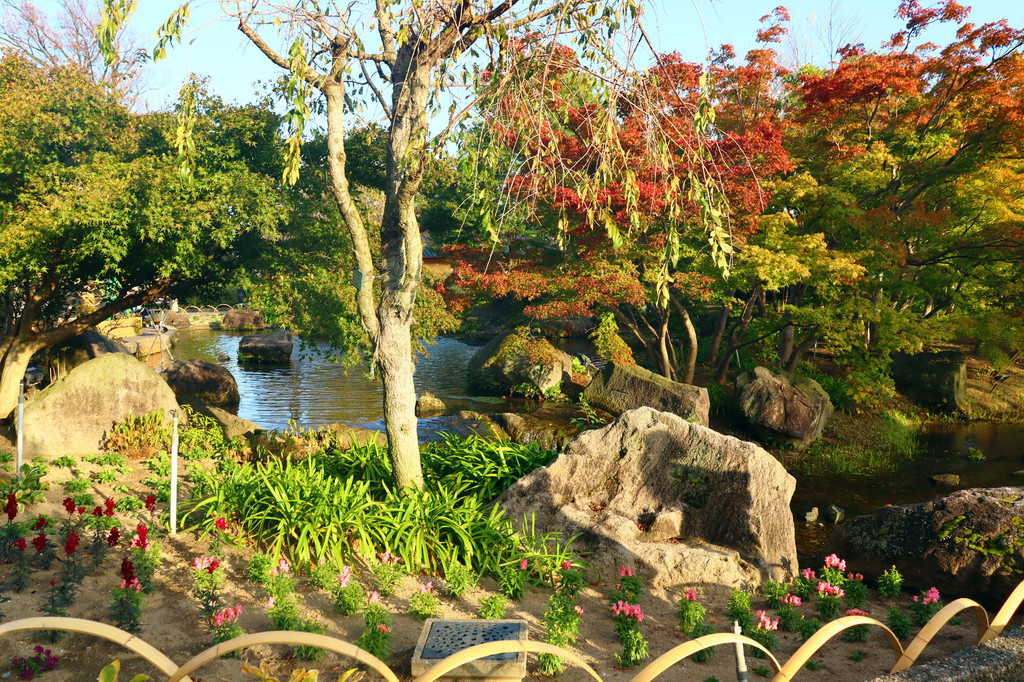 据说这里每年春夏会变身大片打玫瑰园或郁金香园,秋天则红叶遍野。而在冬天来到这里的我,就有幸可以看到每年冬天都会举办的绚丽灯展。
