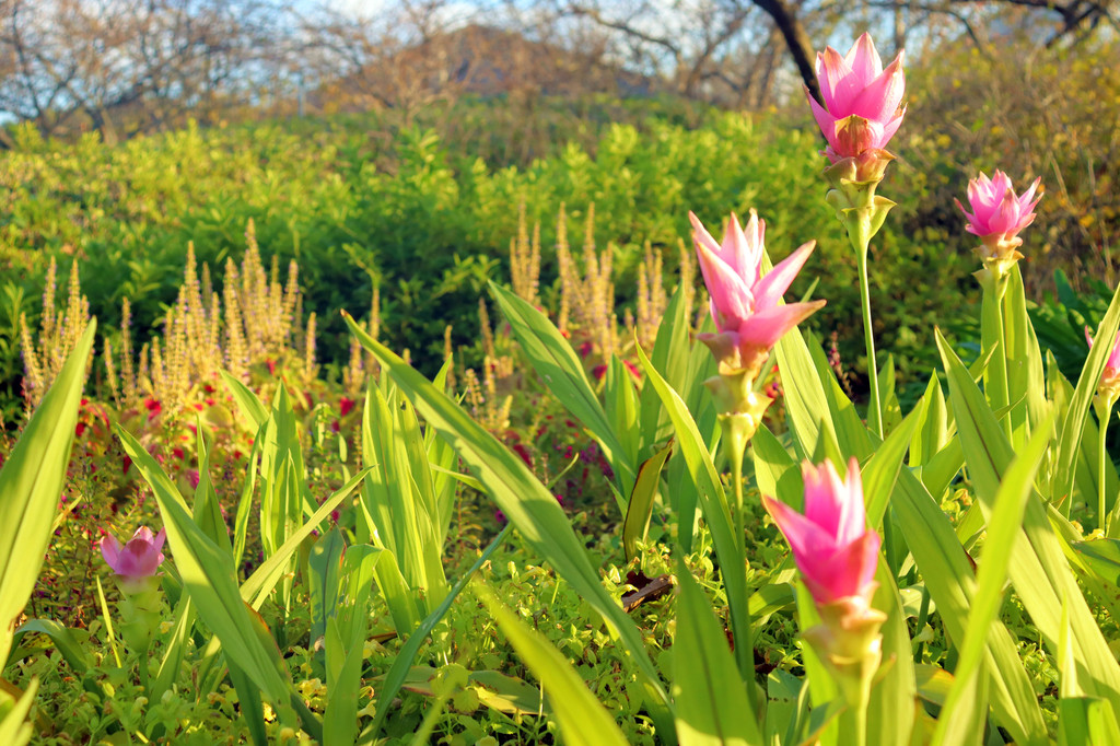 傍晚时分进入度假村,花草树木和天空都蒙上了一层淡淡的暖橘色滤镜。这里有小桥流水、有花香满布,有甜蜜亲昵的小情侣、也有幸福的一家三口、还有并排漫步谈笑的老爷爷老奶奶。
