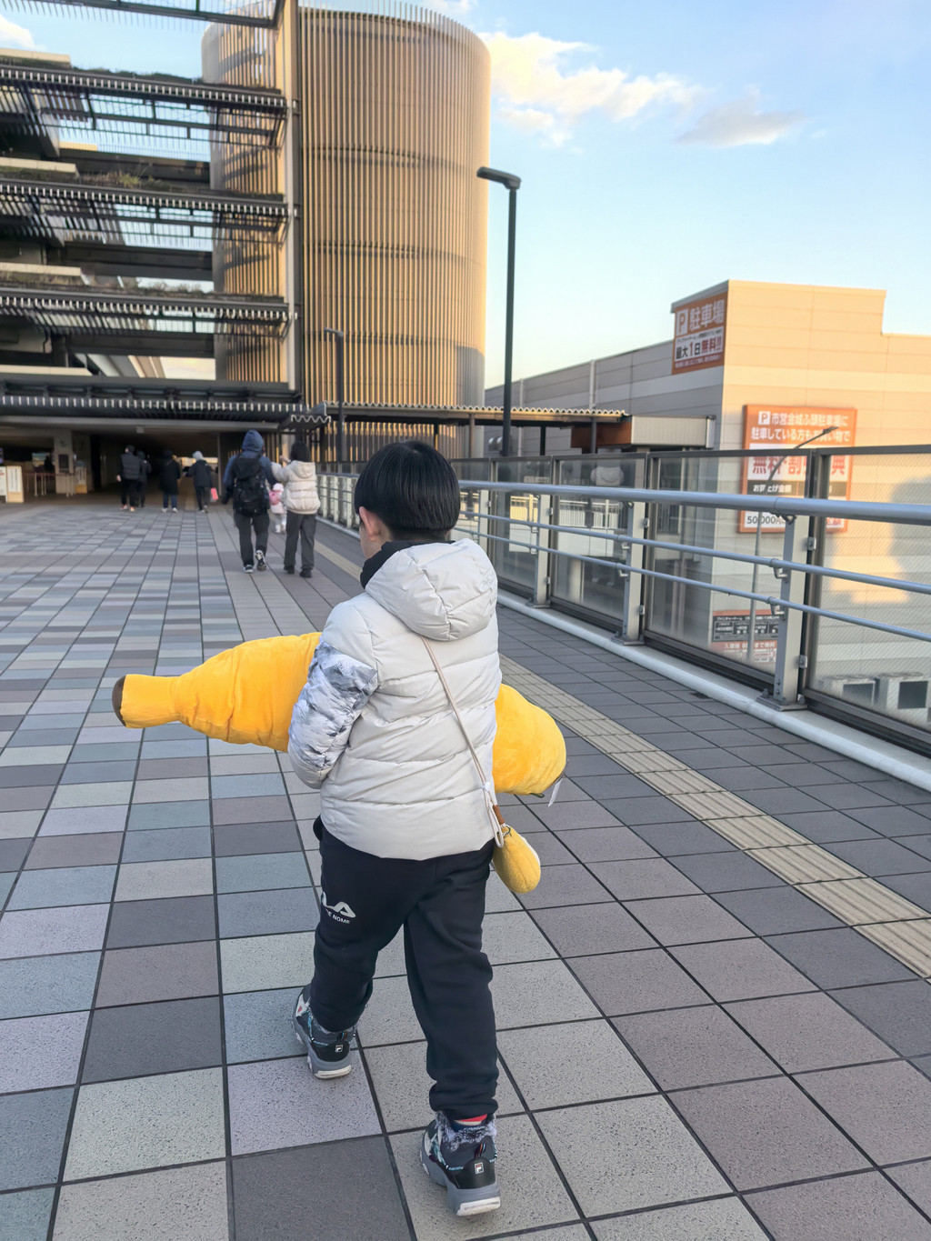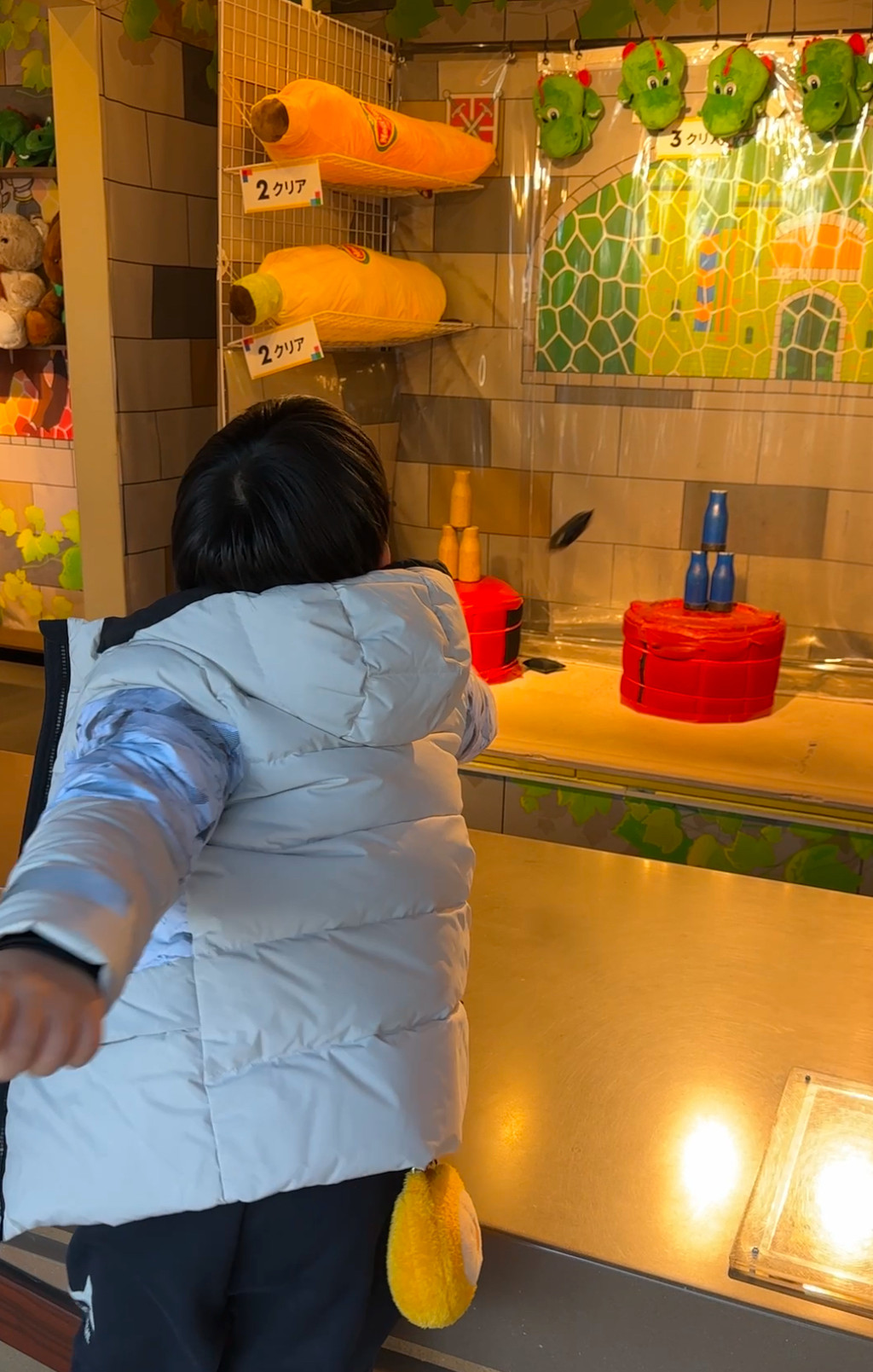 玩游戏得到一个超级大香蕉和鲨鱼手套玩偶,大香蕉本想留在酒店,最后的最后小朋友千里迢迢背回了杭州。