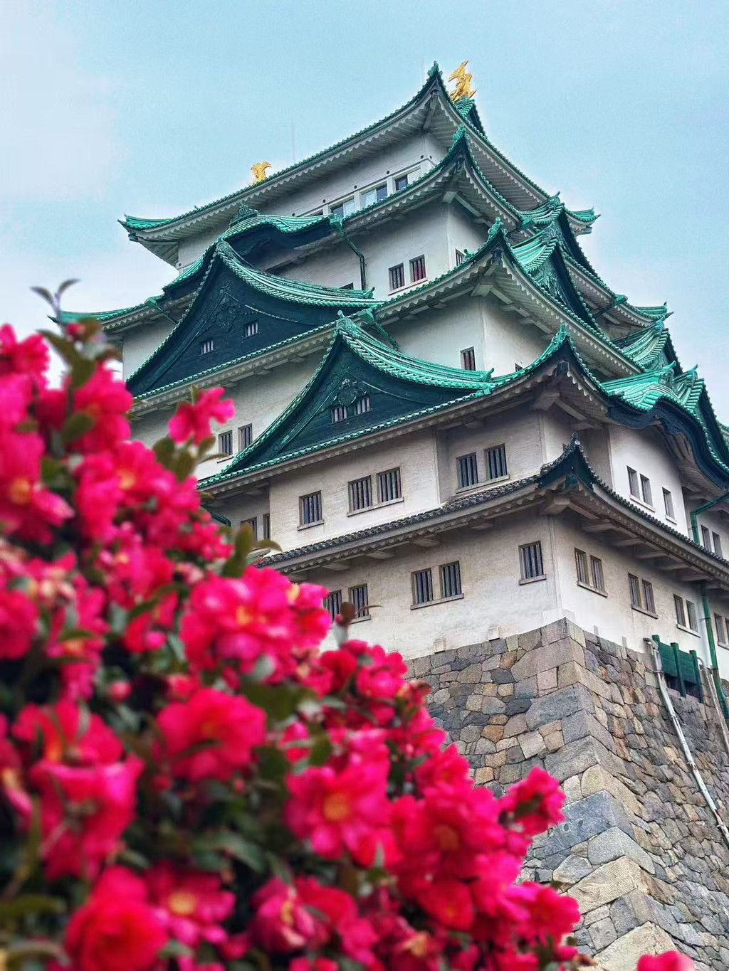 名古屋城是位于日本爱知县名古屋市的城堡,江户时代是尾张藩藩主居城,别称“金城”、“金龇城”。其与大阪城,熊本城被合称为“日本三大名城”。名古屋城为德川家康于1612年所建,经二战战火损毁,1959年修复了幸存的建筑。虽已不复当年旧貌,但城堡的规模仍可一窥,加之其内的2000多株樱花树,花开时节所有建筑掩映于粉烟之中,景象动人。