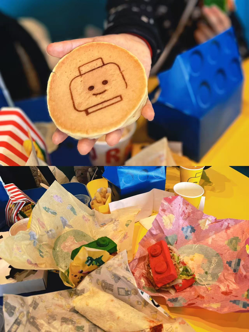 乐高美食,小朋友大胃王吃了一个汉堡和一个儿童套餐。