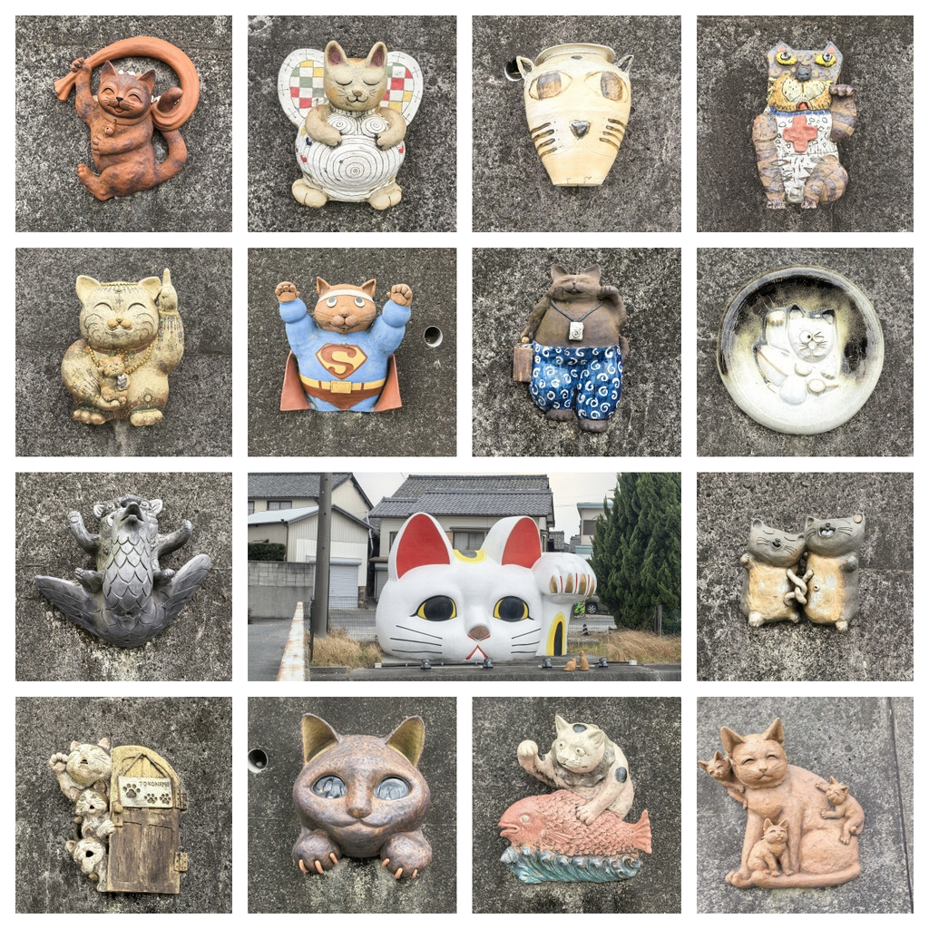 下面招财猫大道的墙壁上,装点着39只不同祈福主题的招财猫。
