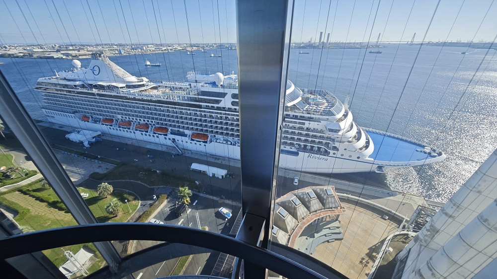 这座鹤立鸡群的建筑物就是名古屋港口大楼,展望台在顶楼。