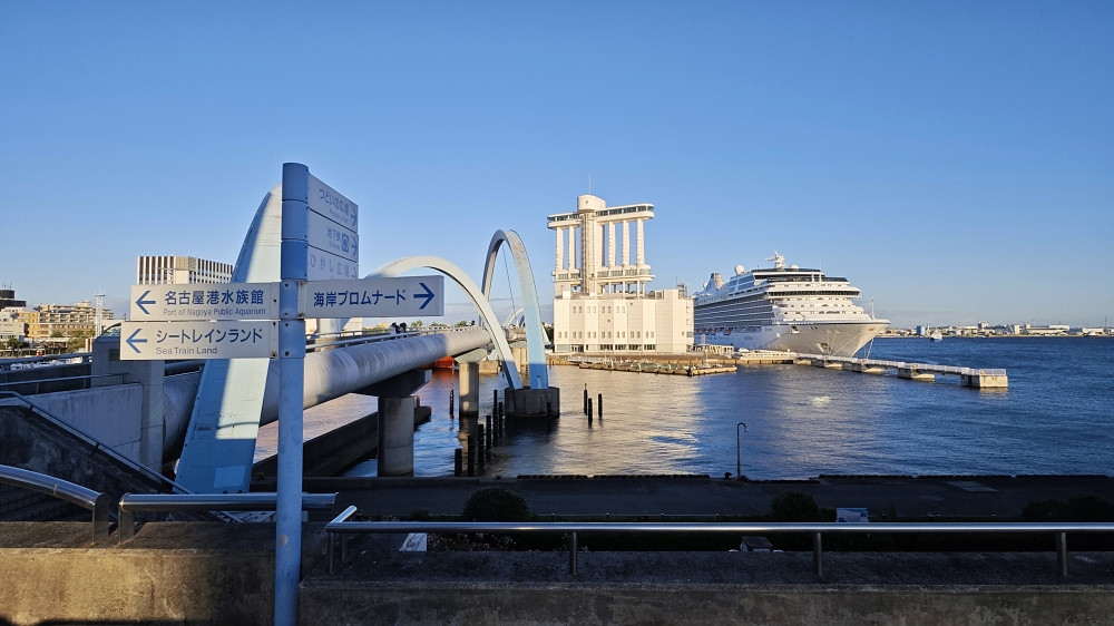 游玩完出来,坐地铁去名古屋港,导航说要在金观测船、山站换乘的,但实际上我们坐的那班车的终点站就是名古屋港,不用换乘,很方便。