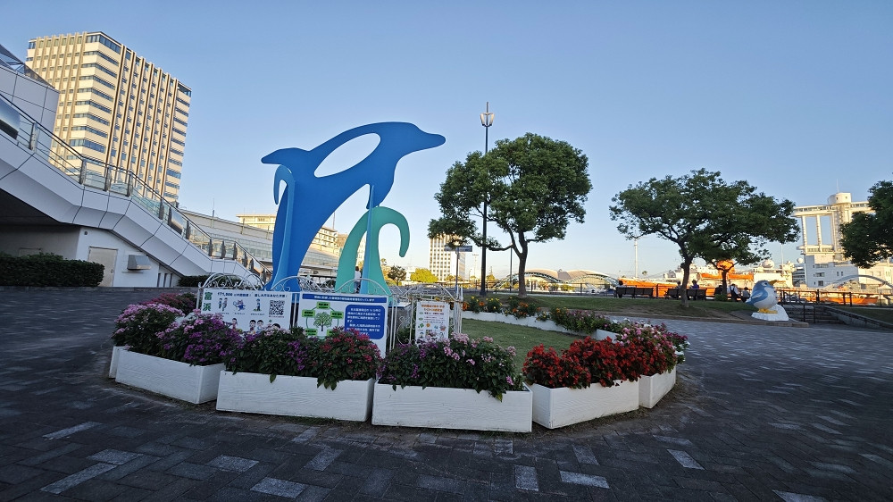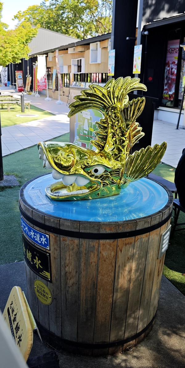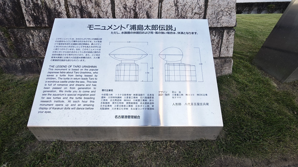 这个外形像鲜贝的物体,是浦岛太郎传说,正点盖子会打开,浦岛太郎(卡通形象)会升上来说话唱歌,挺有趣的,下午五点刚好被我们遇上了。