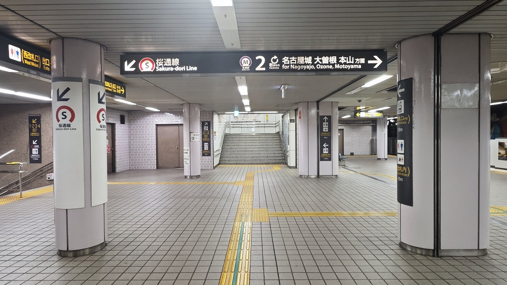 先乘坐桜通线到久屋大通站,换乘名城线至名古屋城站。