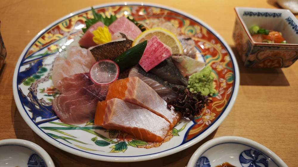 点了刺身拼盘(七款)和寿司(五款),买单6621円。