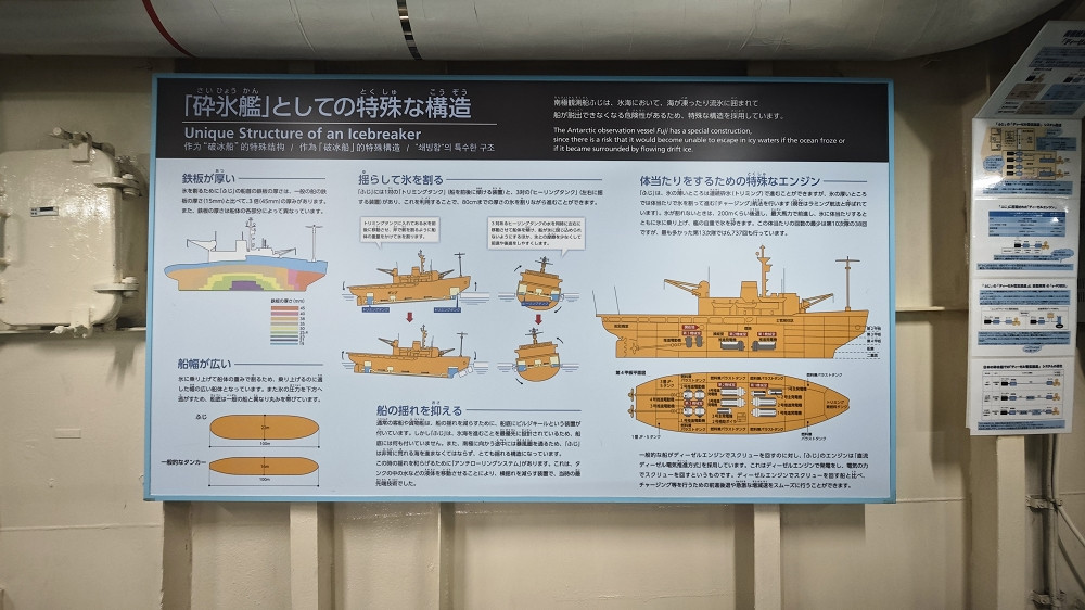 南极观测船1983年正式退役,在七个城市的竞相争取下,有名古屋拿下,将船进行改装,规划为具有教育意义的博物馆,让大家可以一窥当时的船员生活。