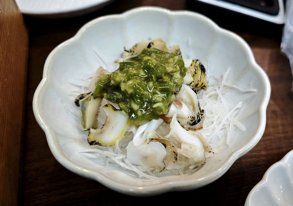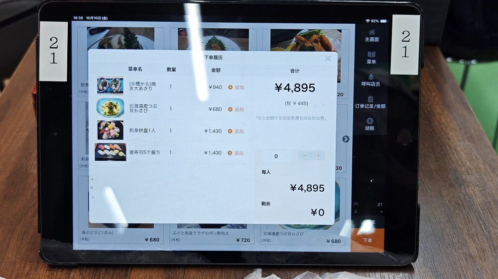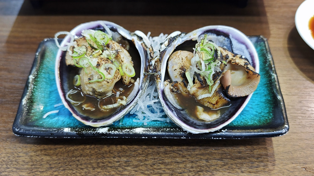 幸好有平板点餐(至少可以看到是什么东西),点了北海道贝、刺身拼盘、寿司、原只花贝。