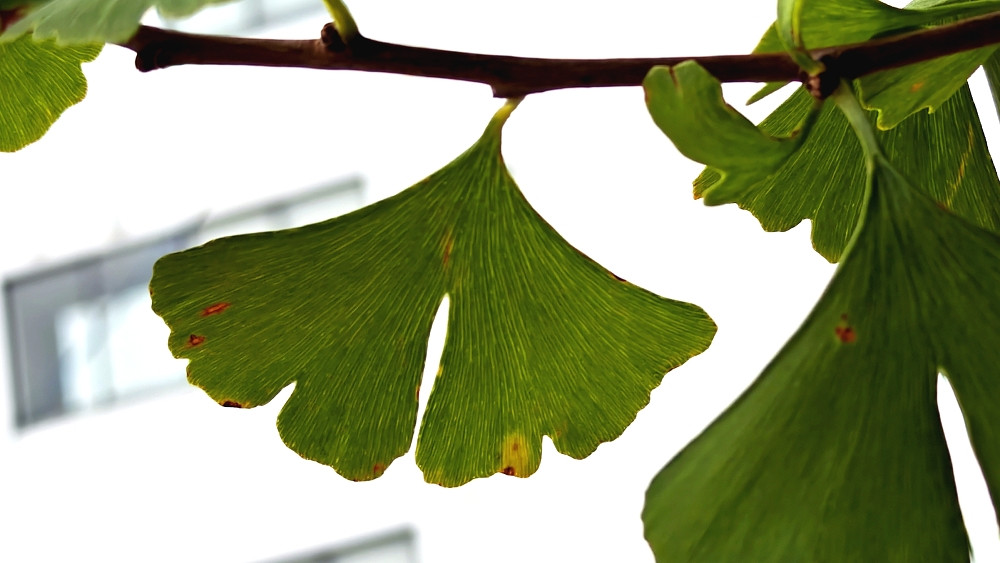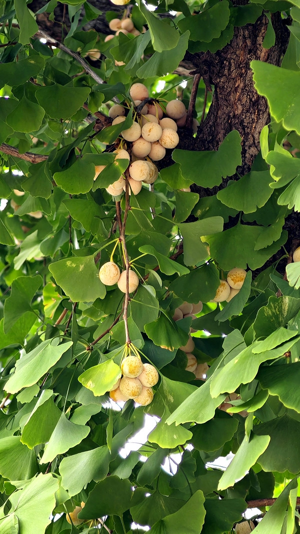 路边的银杏树结了很多银杏果。