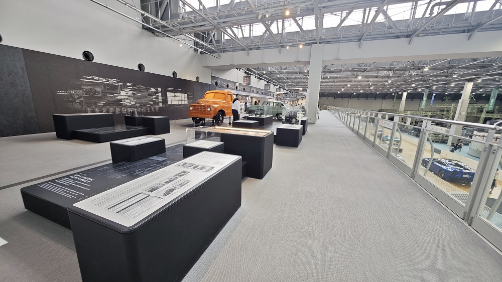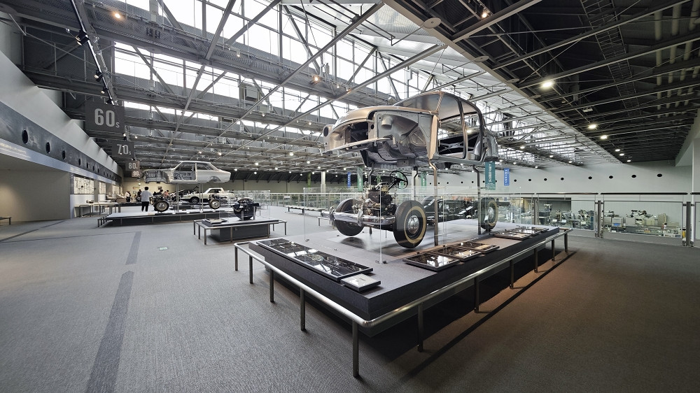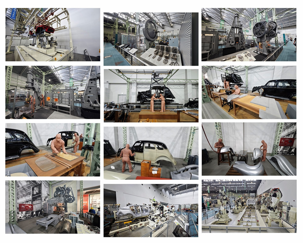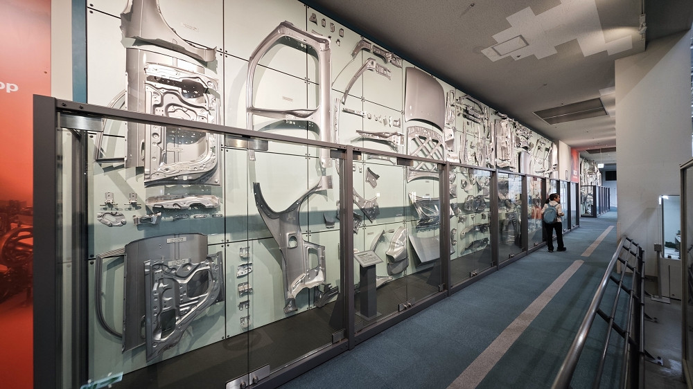 一楼大展厅很大,有历代汽车展品、机械手自动操作演示、锻造工艺场景再现等等。