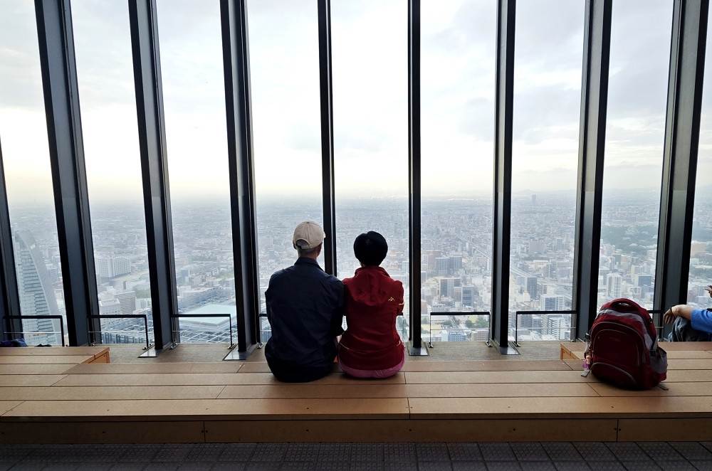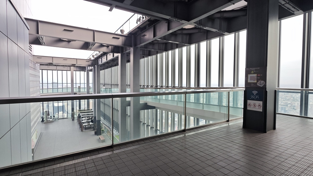 坐电梯到44楼,购票(1000円/人)后乘扶手电梯上46楼。