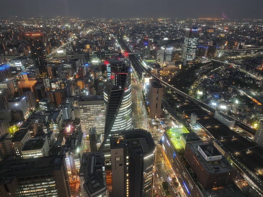 几乎可以环绕大厦一圈,全方位俯瞰整个名古屋市,可惜今天多云,无法看到日落,不过夜色撩人,还是挺不错的。