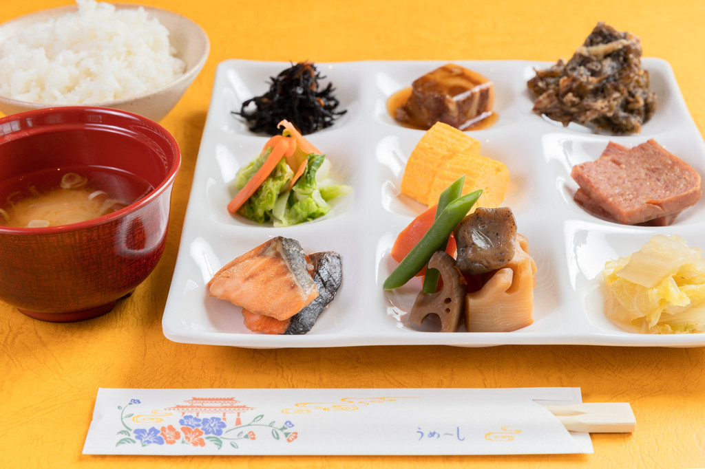 早餐可在5楼「Kanasan Dinning」享用,提供营养均衡的和洋自助餐及使用当地新鲜食材制成的冲绳料理。