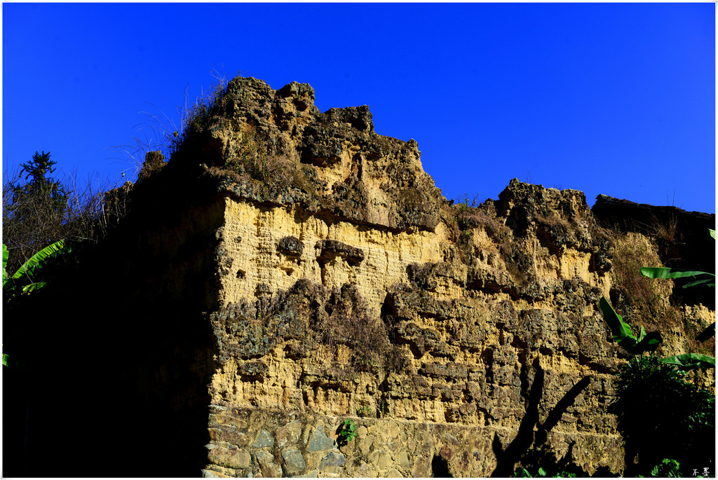 路边被烧毁的土楼遗迹静静的诉说着它千百年来的遭遇。