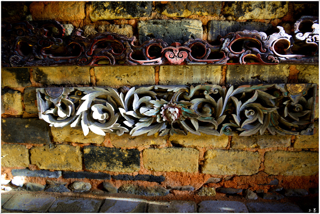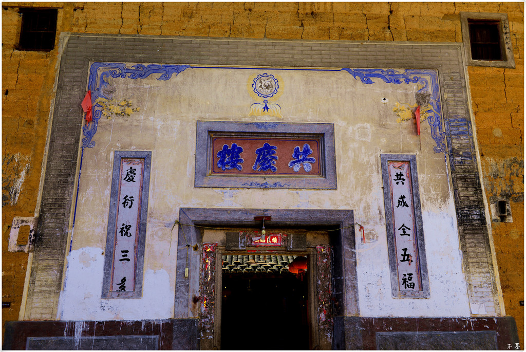 从楼门的门头装饰到楼内突出的祖堂石柱,都可看出明显的西洋味道,在土楼建筑中很特别。