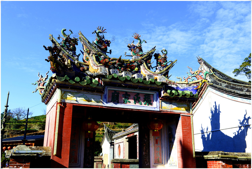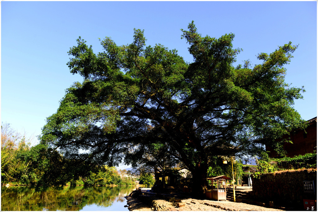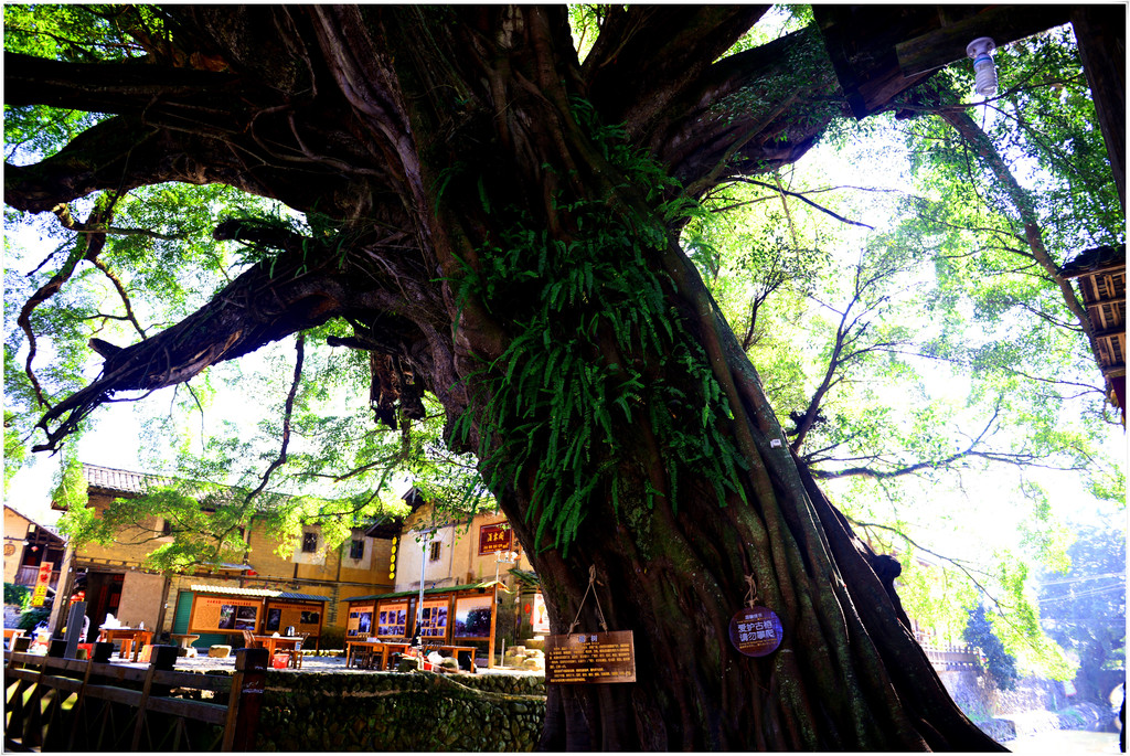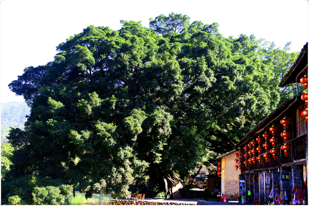 长教古村沿溪岸边生长着12棵千年古榕,其中,有棵最大的已过千年。老榕树遮天蔽日,郁郁葱葱,像把巨伞,成为古村的一大景观。