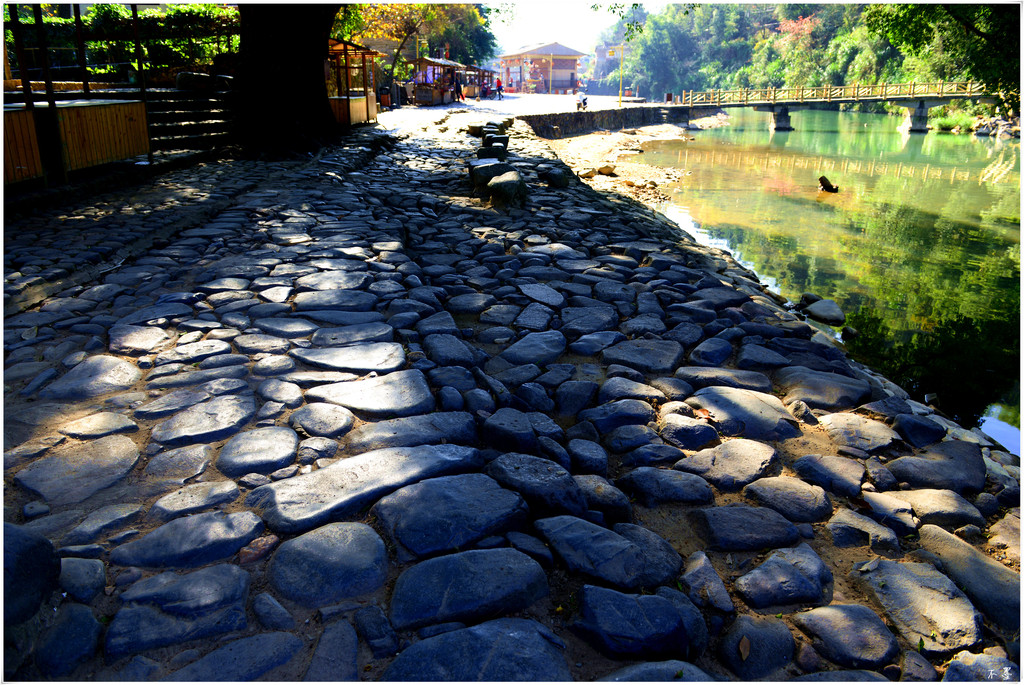 木桥吱呀作响,溪流哗哗流淌,踏着石砌的长教古道,走向云水谣深处。