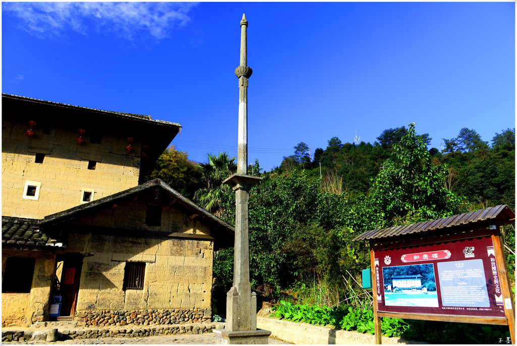 和贵楼,和亲既康禄,贵子共贤孙。为长教简氏十三世简次屏于清雍正十年(1732)所建,是内通廊式方楼的典型。始建为四层,重建时又加高一层,成为如今的五层楼,高度达21.5米,为已知福建土楼中最高的一座。