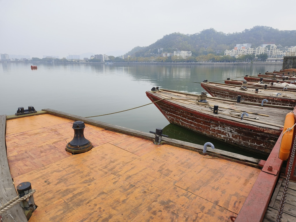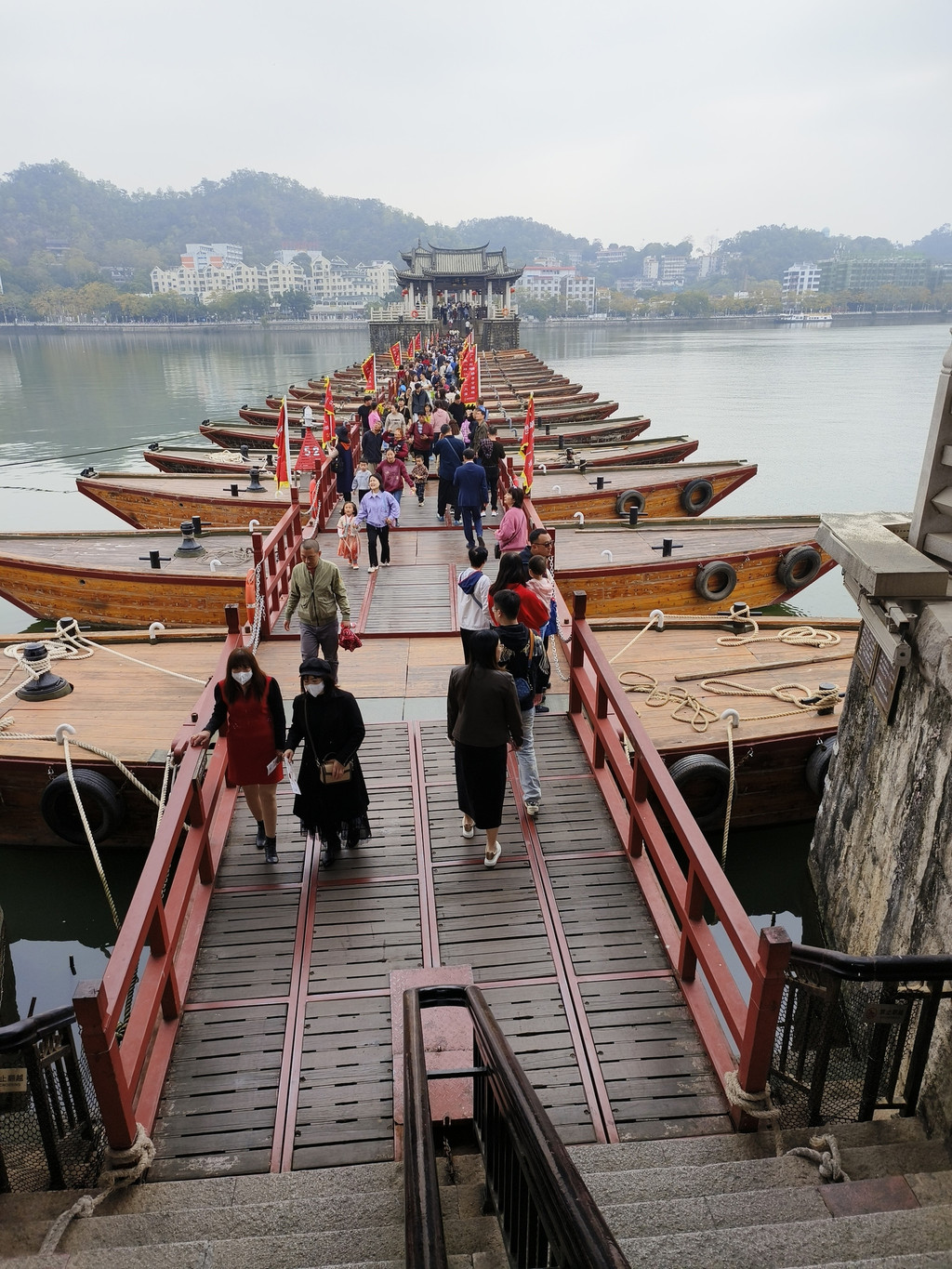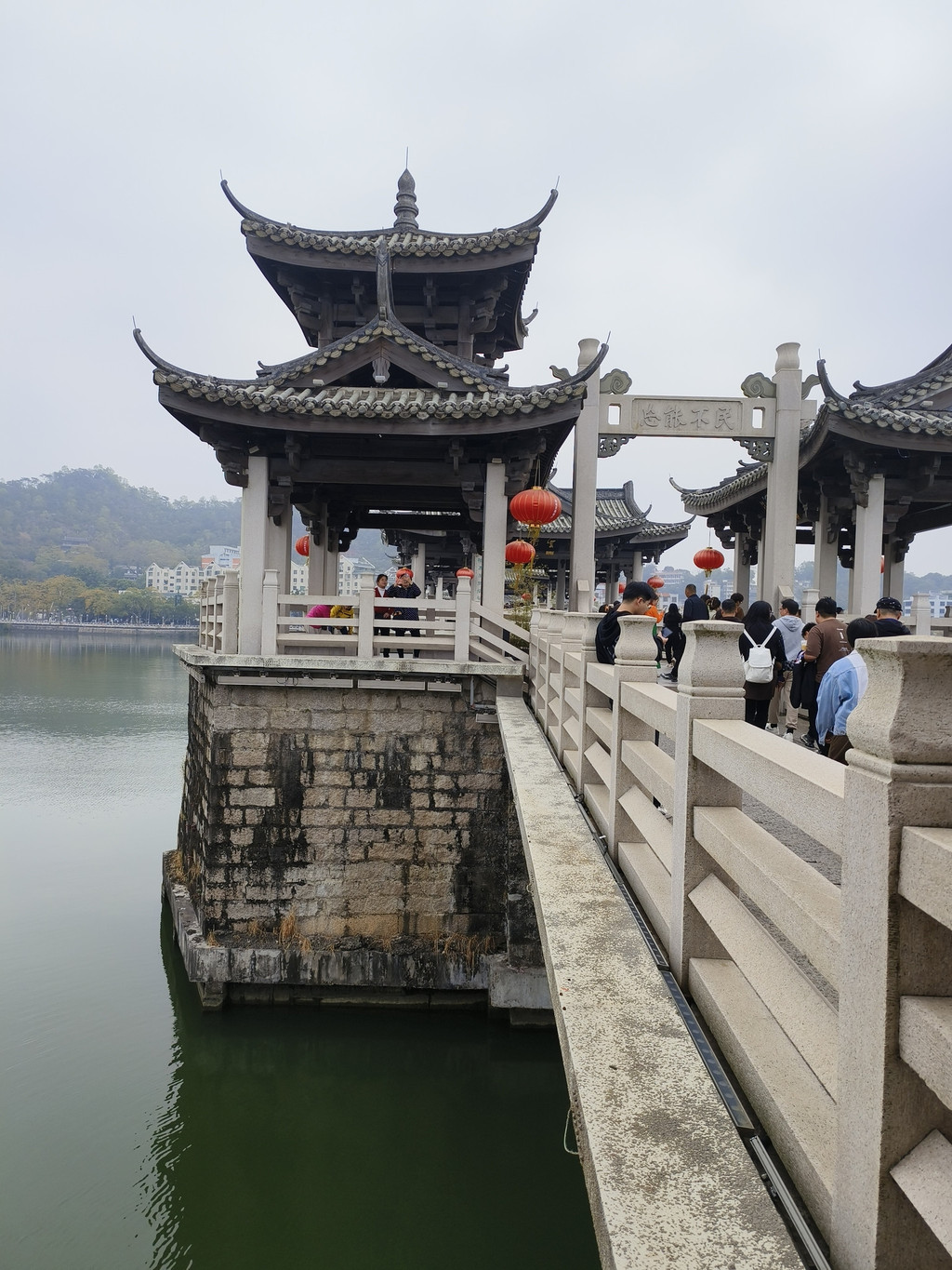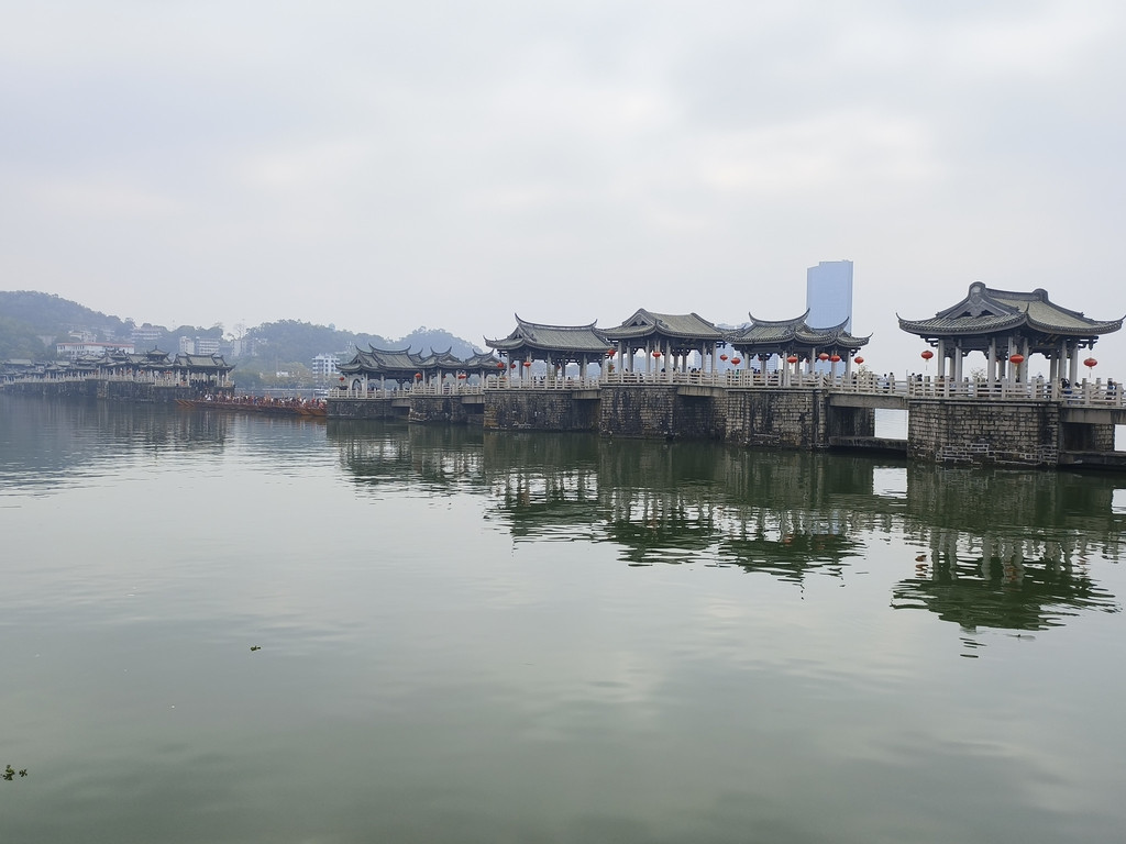 距离产生美,广济桥还是远观比较好看。不过要有两个条件,一是要朝北看,南边不远处有高楼,煞风景;二是风平浪静时,倒影更美。