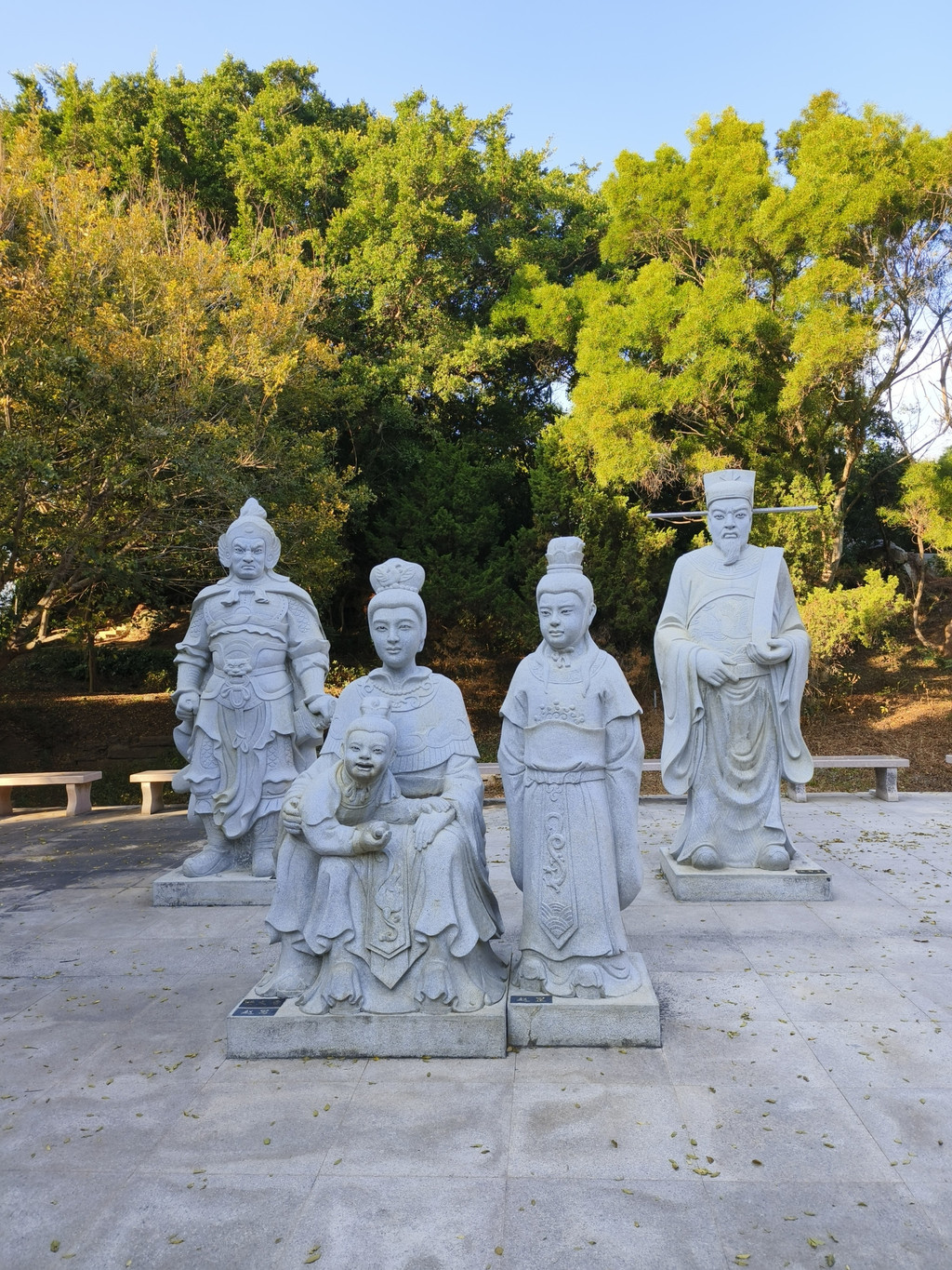 南宋帝室雕塑。王朝的最后时刻在此凝固:中间是太后杨淑妃,膝上偎依着宋末帝赵昺,时年七岁,一年后随宋而亡;右立者为宋端宗赵昰,十岁落海后惊吓病故;右后为名臣陆秀夫;左后为大将张世杰。