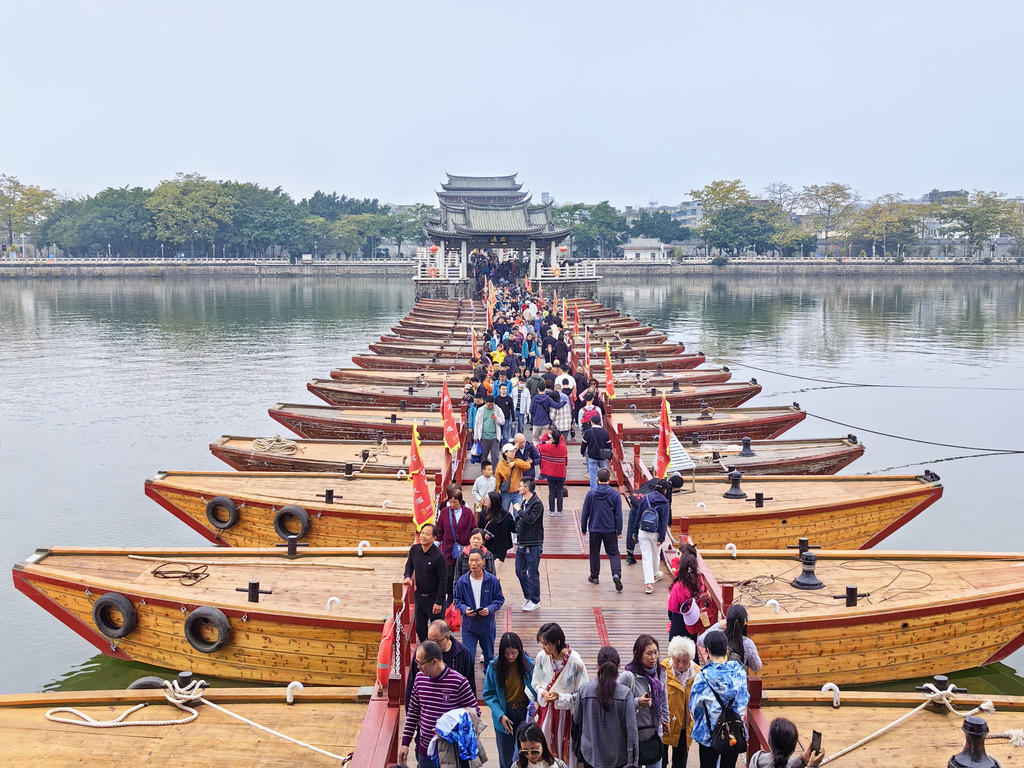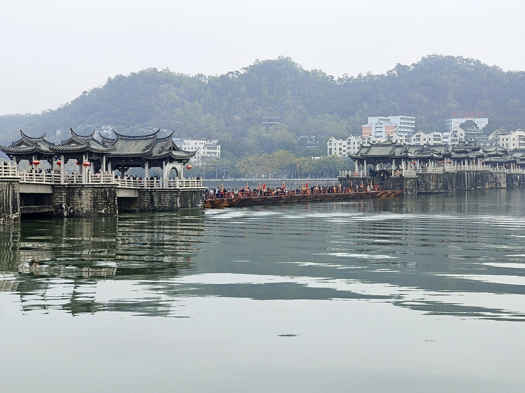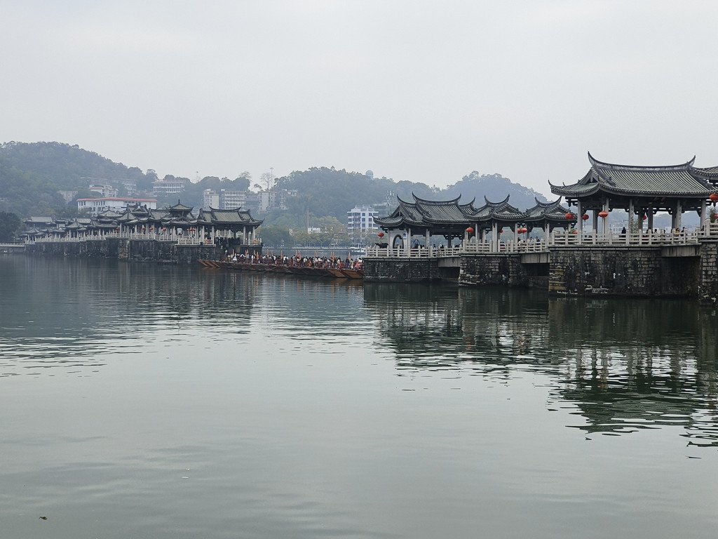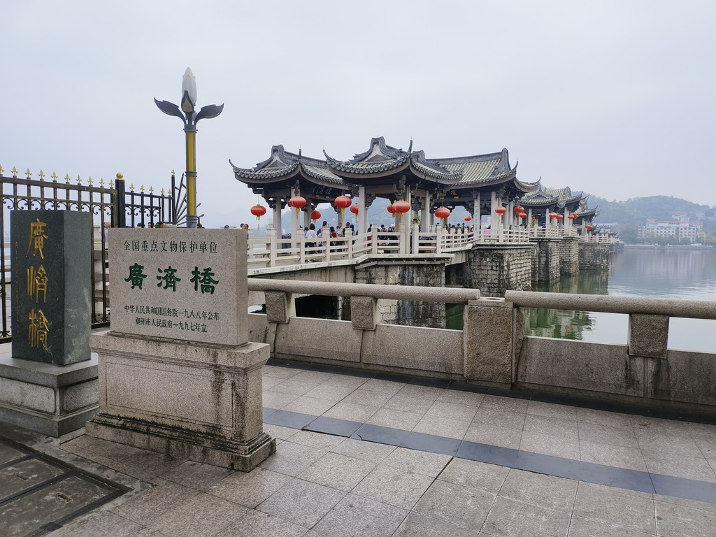 广济桥位于潮州古城东门外,横跨韩江,是世界上最早的启闭式桥梁、中国四大名桥之一。始建于南宋乾道七年(1171)。后历经风雨多次加固维修,2007年按明代风格修复竣工。