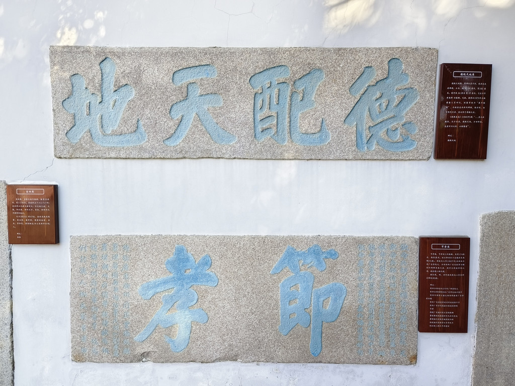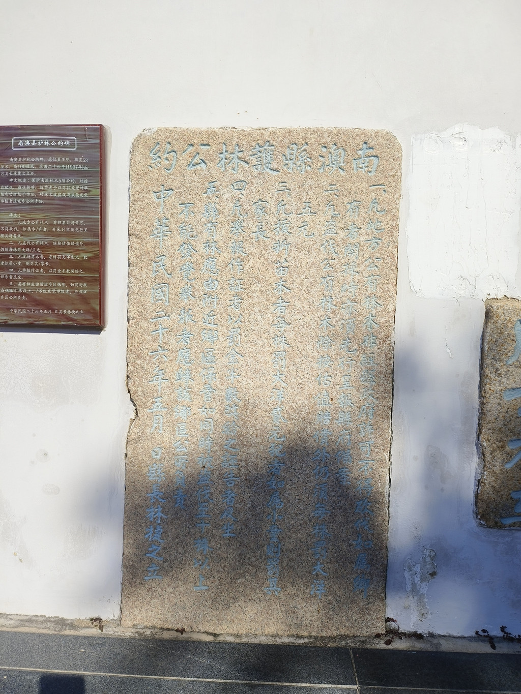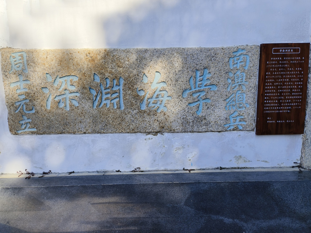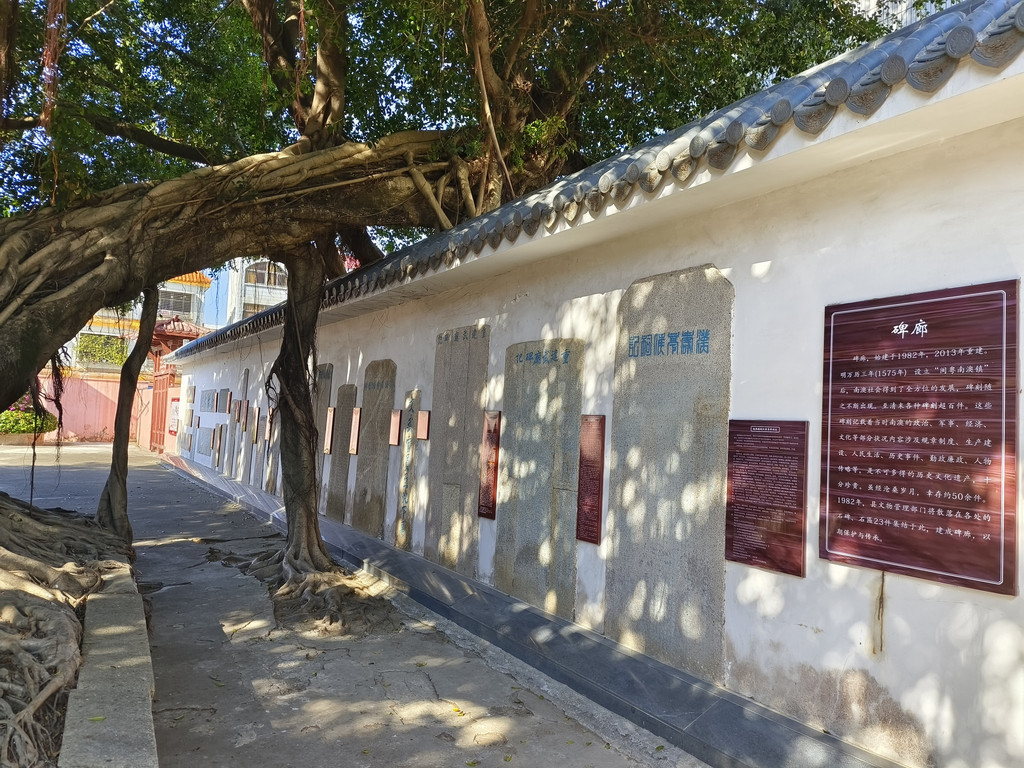 碑廊,共有23方石碑、石匾,包括汉寿亭侯祠记、右营界址、城匾观澜与望霞、文庙之杏坛、海学深渊、德配天地、节孝、南澳县护林公约等内容。