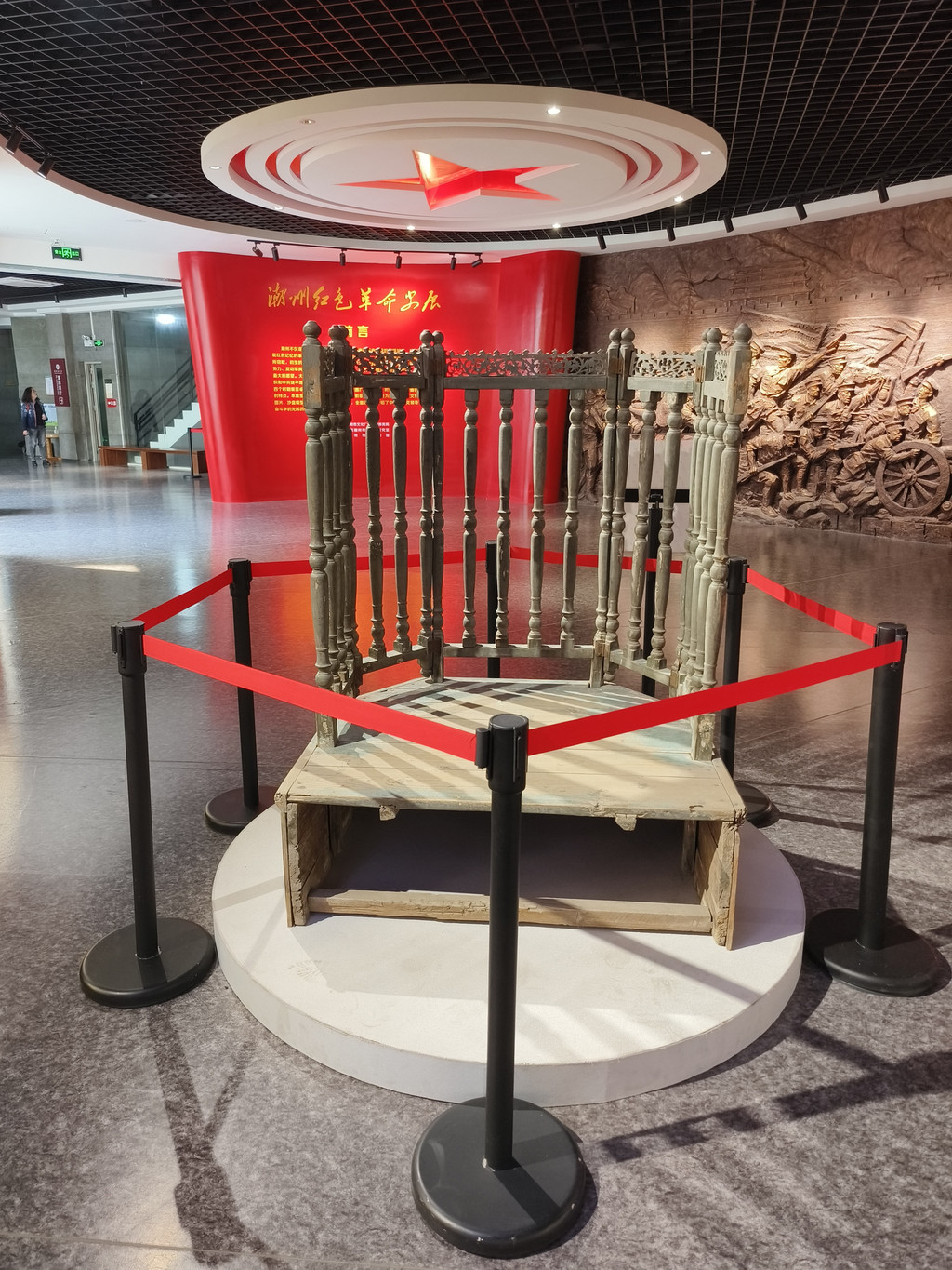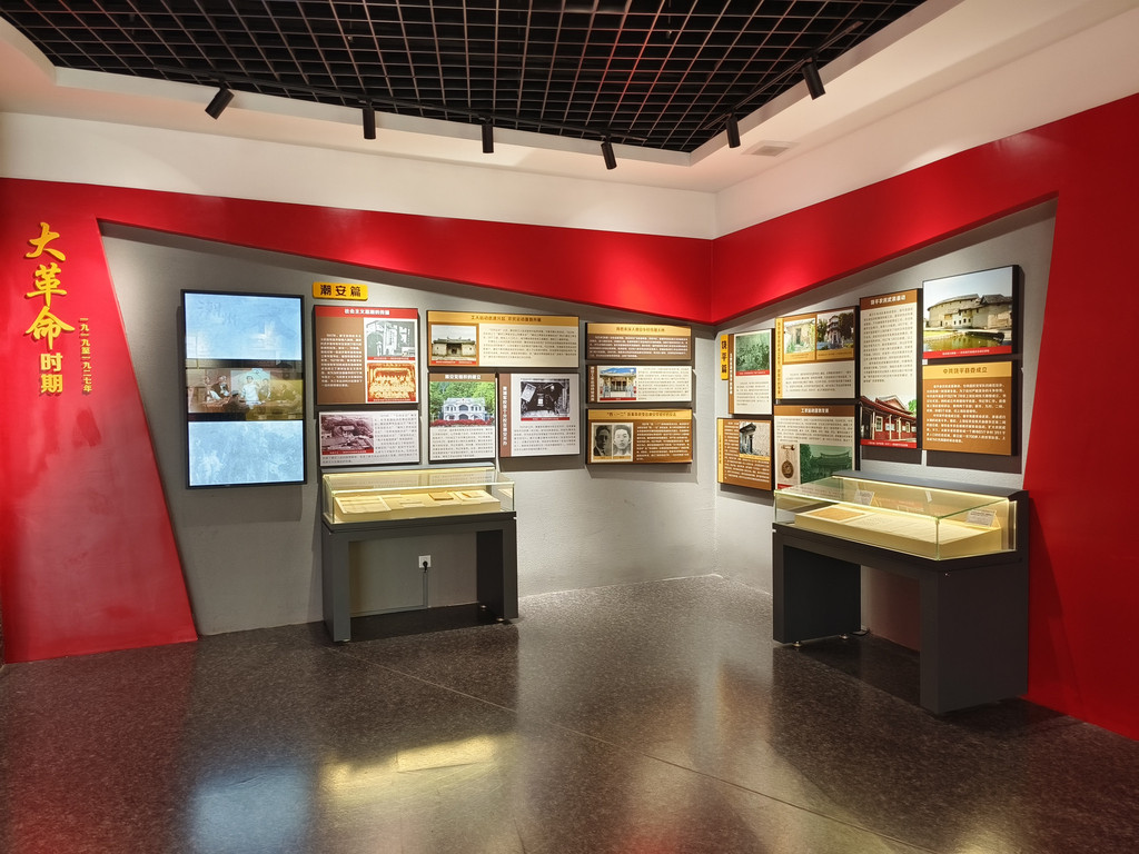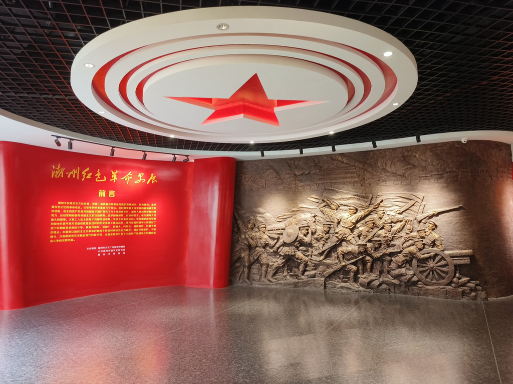 红色革命史展位于主楼二楼。以新民主主义革命时期四个阶段为序,按照“潮安篇”(包括现湘桥区、潮安区、枫溪区)和“饶平篇”(现饶平县),通过史料图片、实物、场景复原等方式,介绍潮州革命运动的光辉历史。