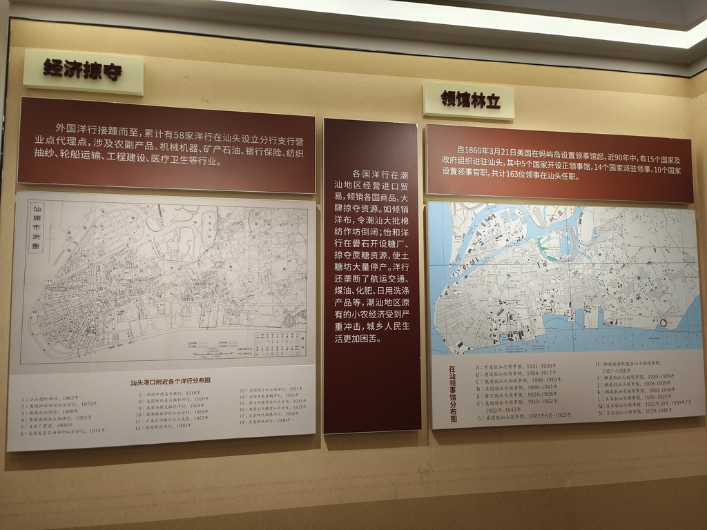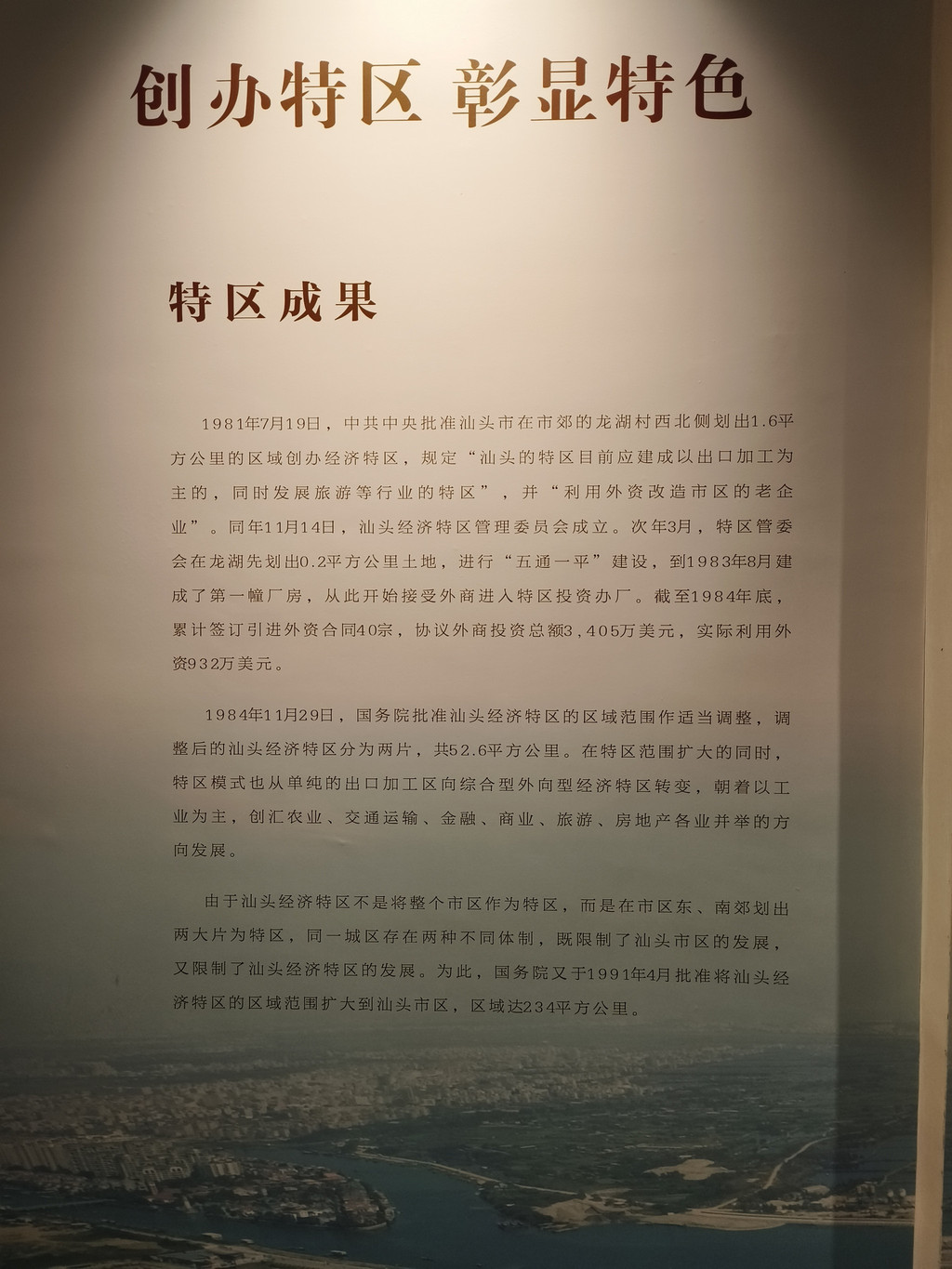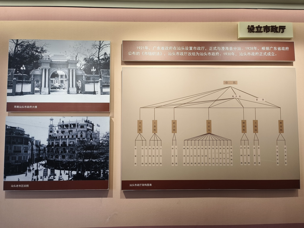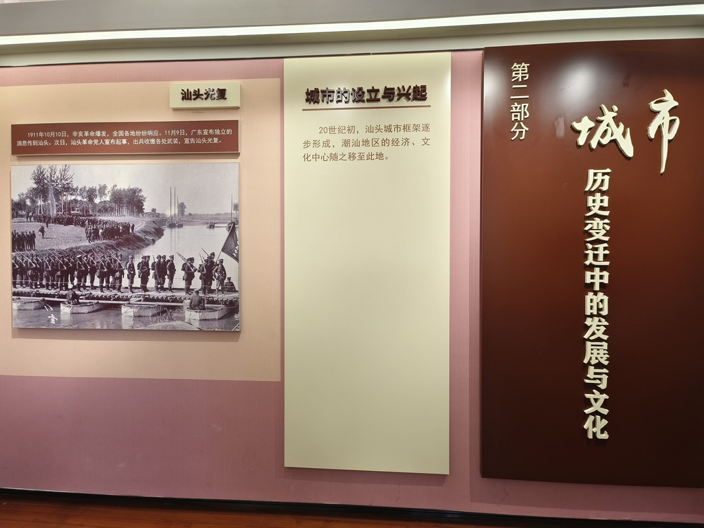 展览共三层,一层展出汕头1860年开埠后的情况,二层讲述辛亥革命后汕头城市发展,三层展陈改革开放后的发展情况。
