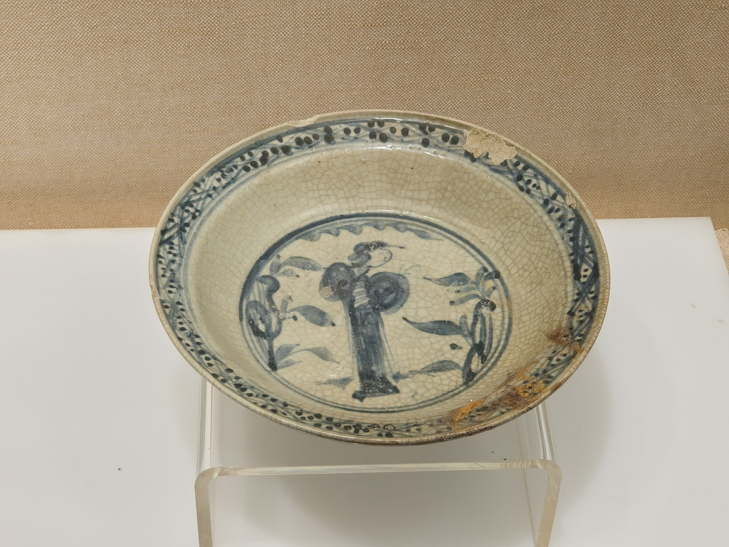 ↗漳州窑青花仕女图纹折沿盘(明万历)