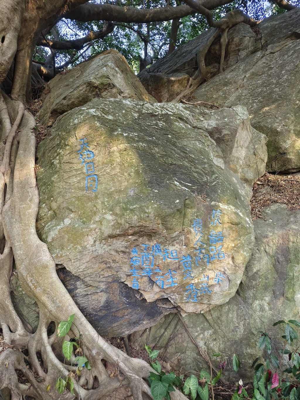 太子楼遗址。太子指继任宋端宗的末帝赵昺。建筑已不存在,遗址石壁上刻着几行难辨的字迹。