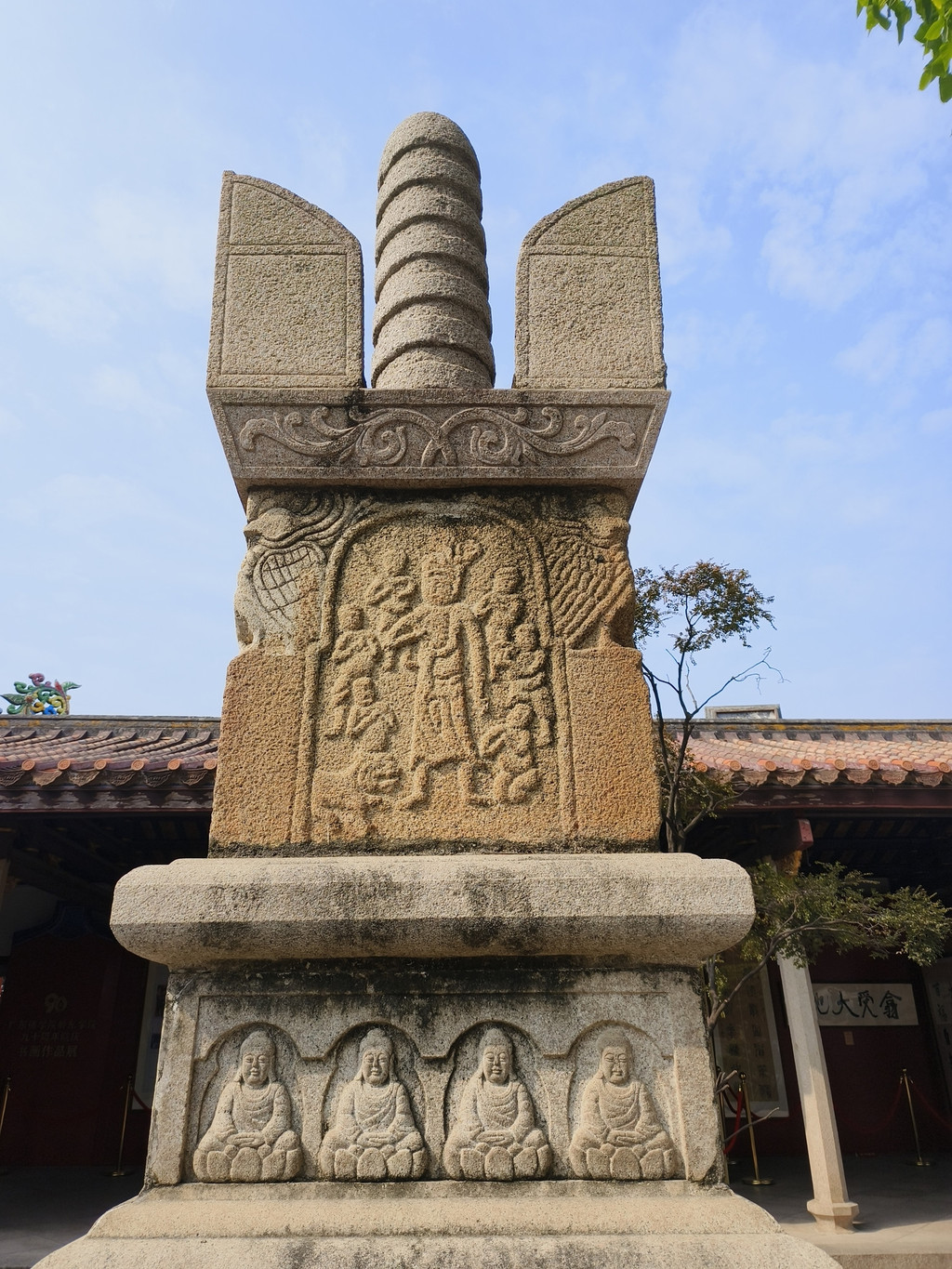 潮州开元寺,始建于唐开元二十六年(738)。中轴建筑依次为照墙、金刚殿、天王殿、大雄宝殿、藏经楼、玉佛楼。