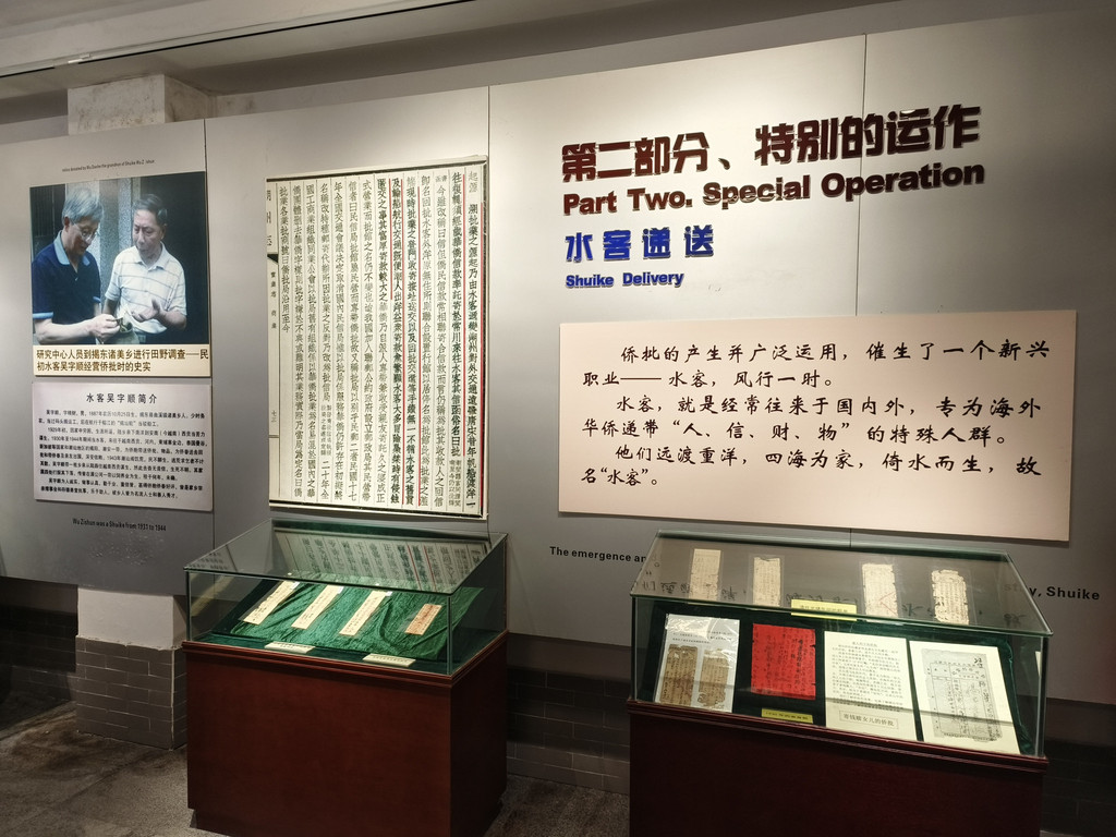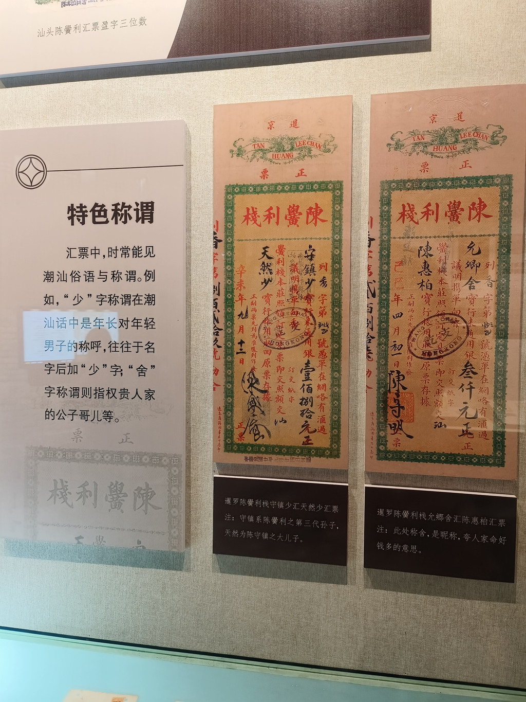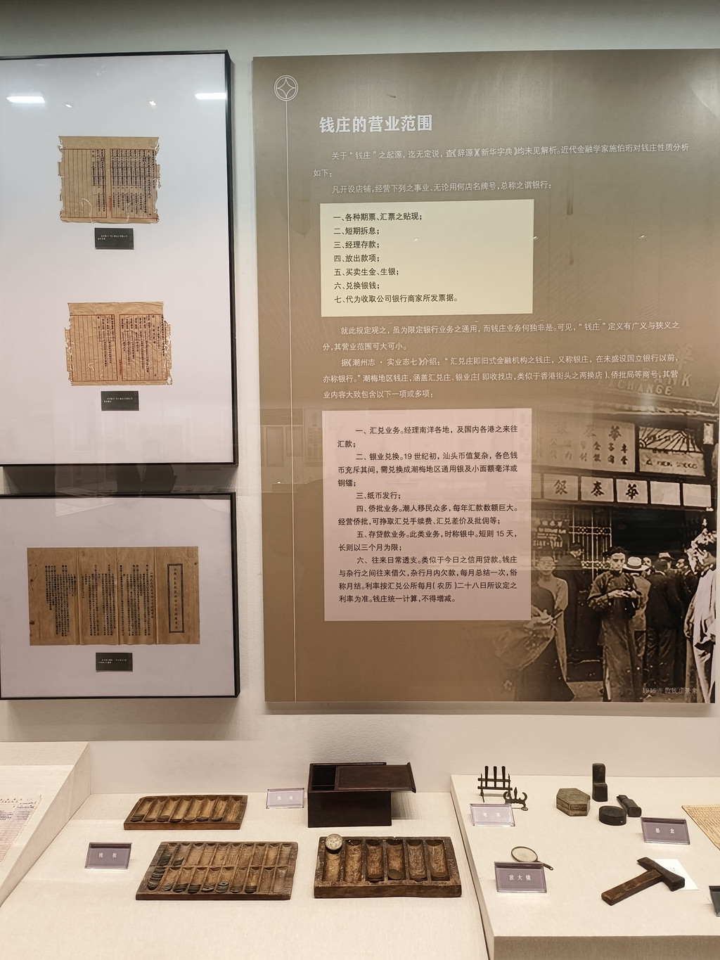 潮汕钱庄展馆从四海侨银、钱庄兴替、票上风光、红色侨资四个方面,展示钱庄发展史、汕头开埠历史、华侨文化等内容,展现潮商经营法则、华侨赤子情怀、潮人进取精神。
