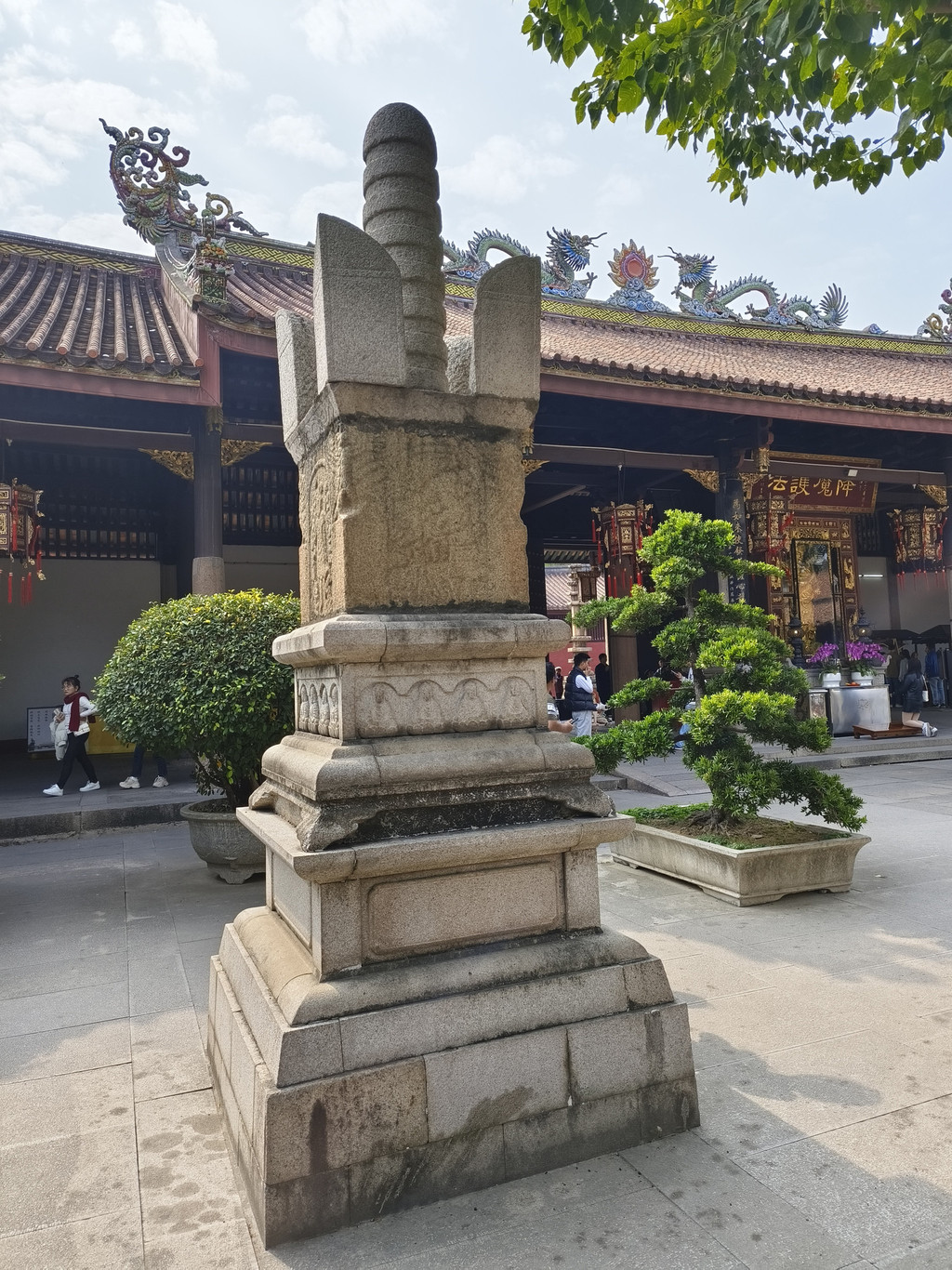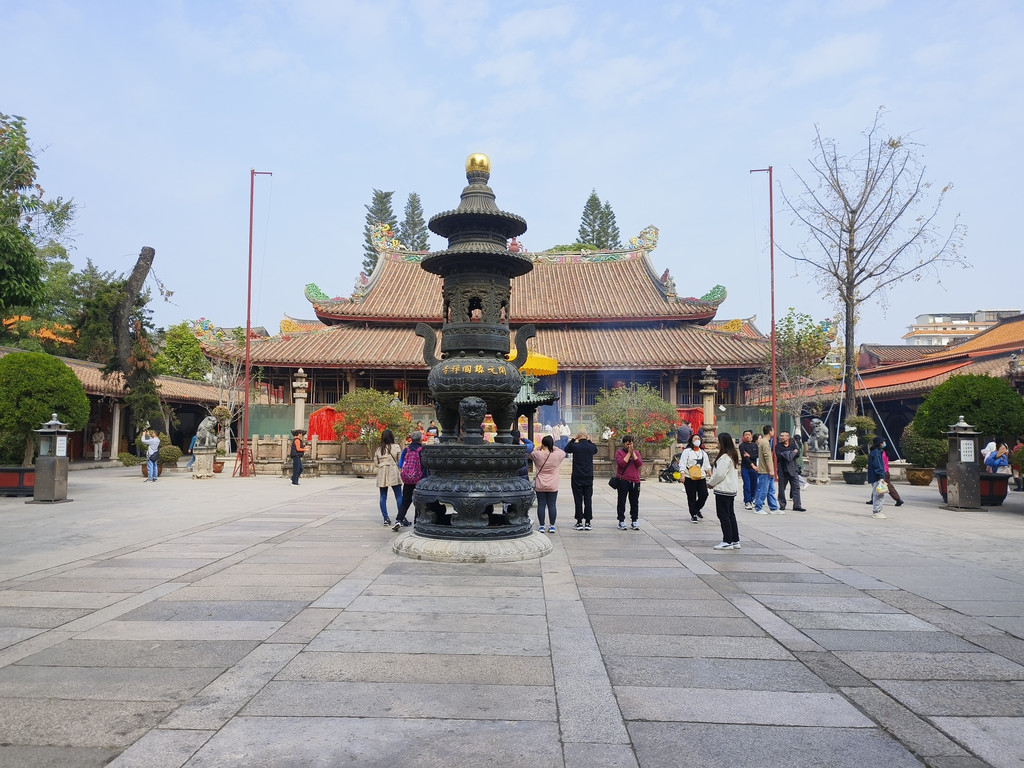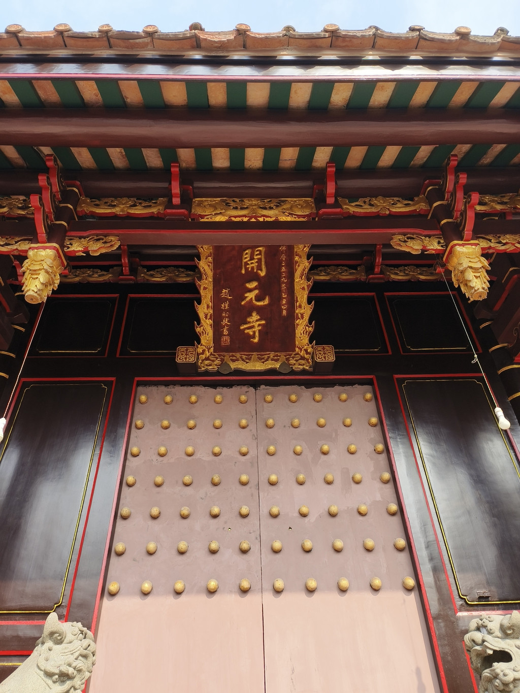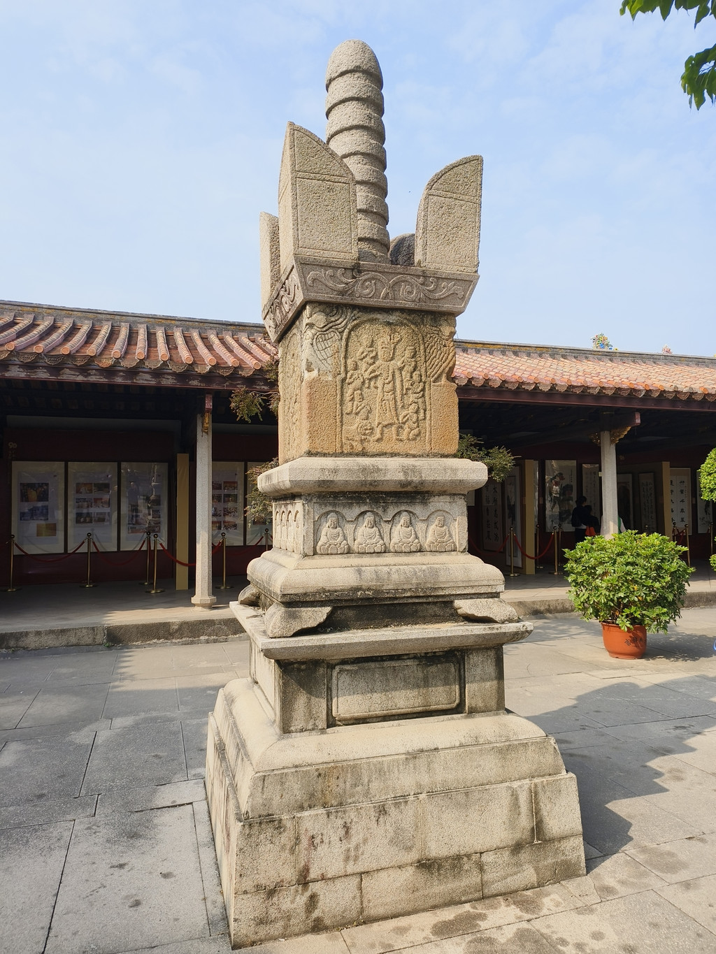 看,香炉上写的是“开元镇国禅寺”。之所以用“镇国”两字,据说是因为明朝初年倭寇侵犯我国,只犯沿海而不敢犯潮州城,指挥俞良辅以为开元寺能镇境保国,奏请朝廷封开元寺为“镇国禅寺”并得到批准。