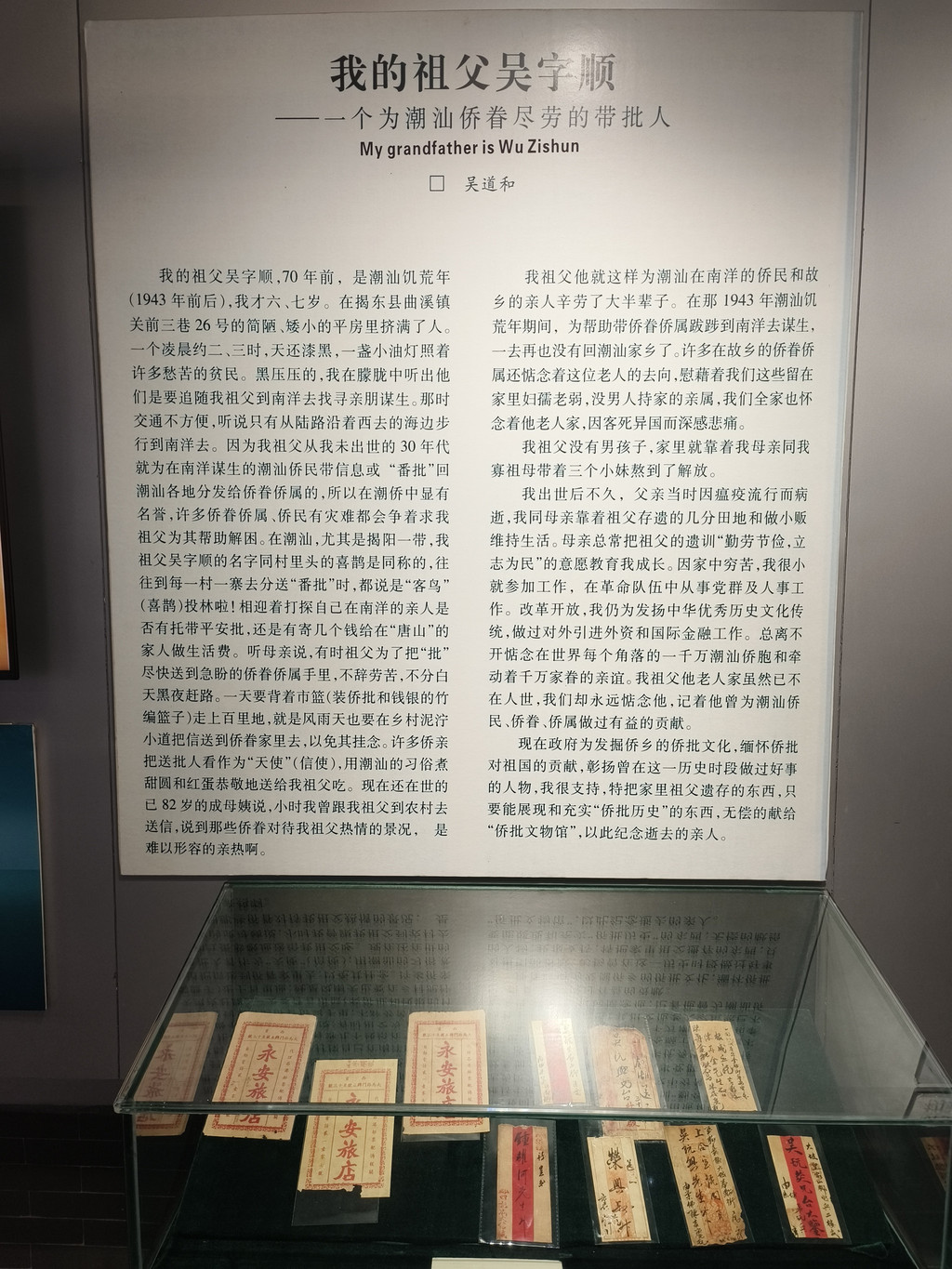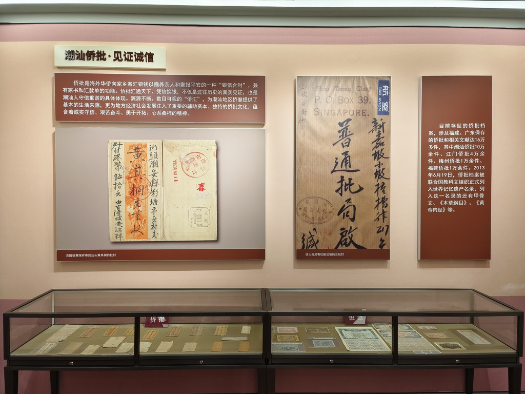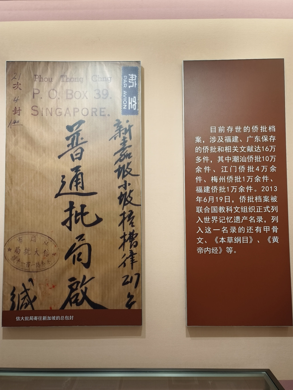 潮汕话将“信”称为“批”,侨批又称银信,是海外侨胞通过民间渠道寄给家乡眷属的书信和汇款凭证的合称。一封侨批就是一个华侨家庭的故事,侨批文物馆记录了海外华侨的奋斗史。