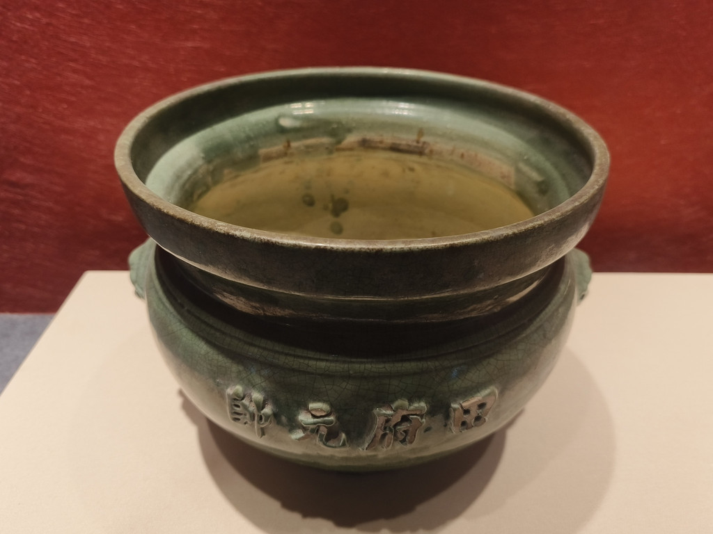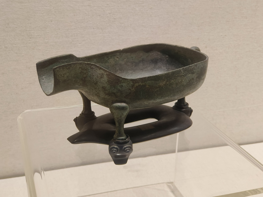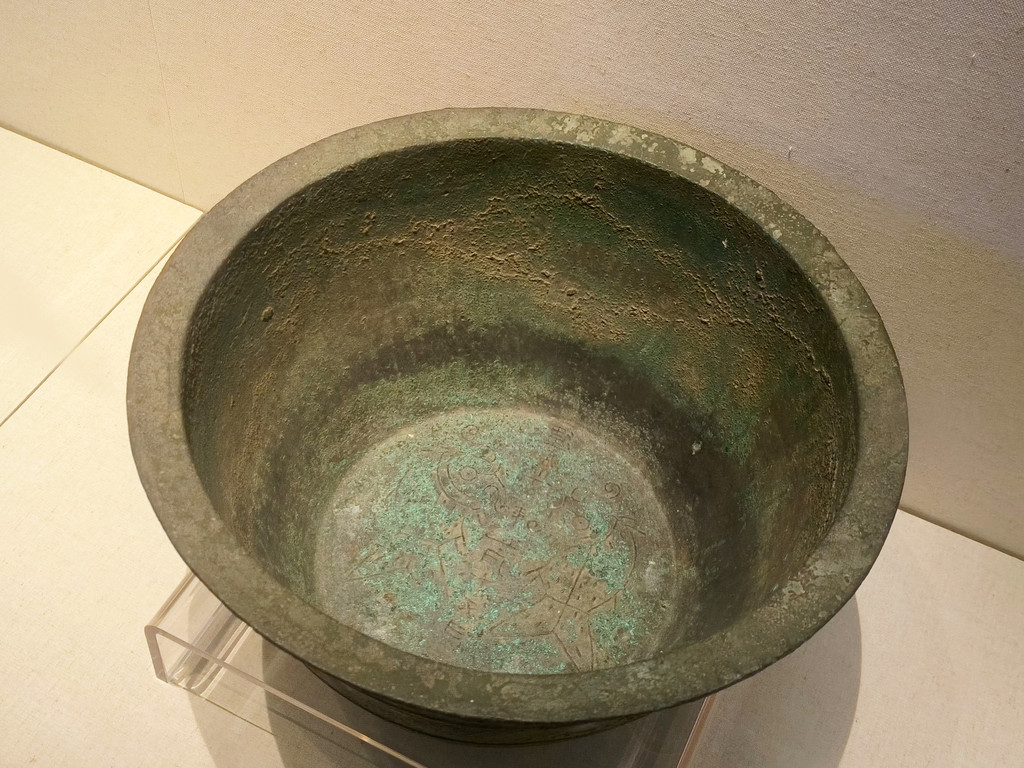 ↗建宁款铜双鱼洗(东汉)。内底饰双鱼纹,刻“建宁四年正月……”等字样。“建宁”为东汉灵帝刘宏年号,“建宁四年”即公元171年。