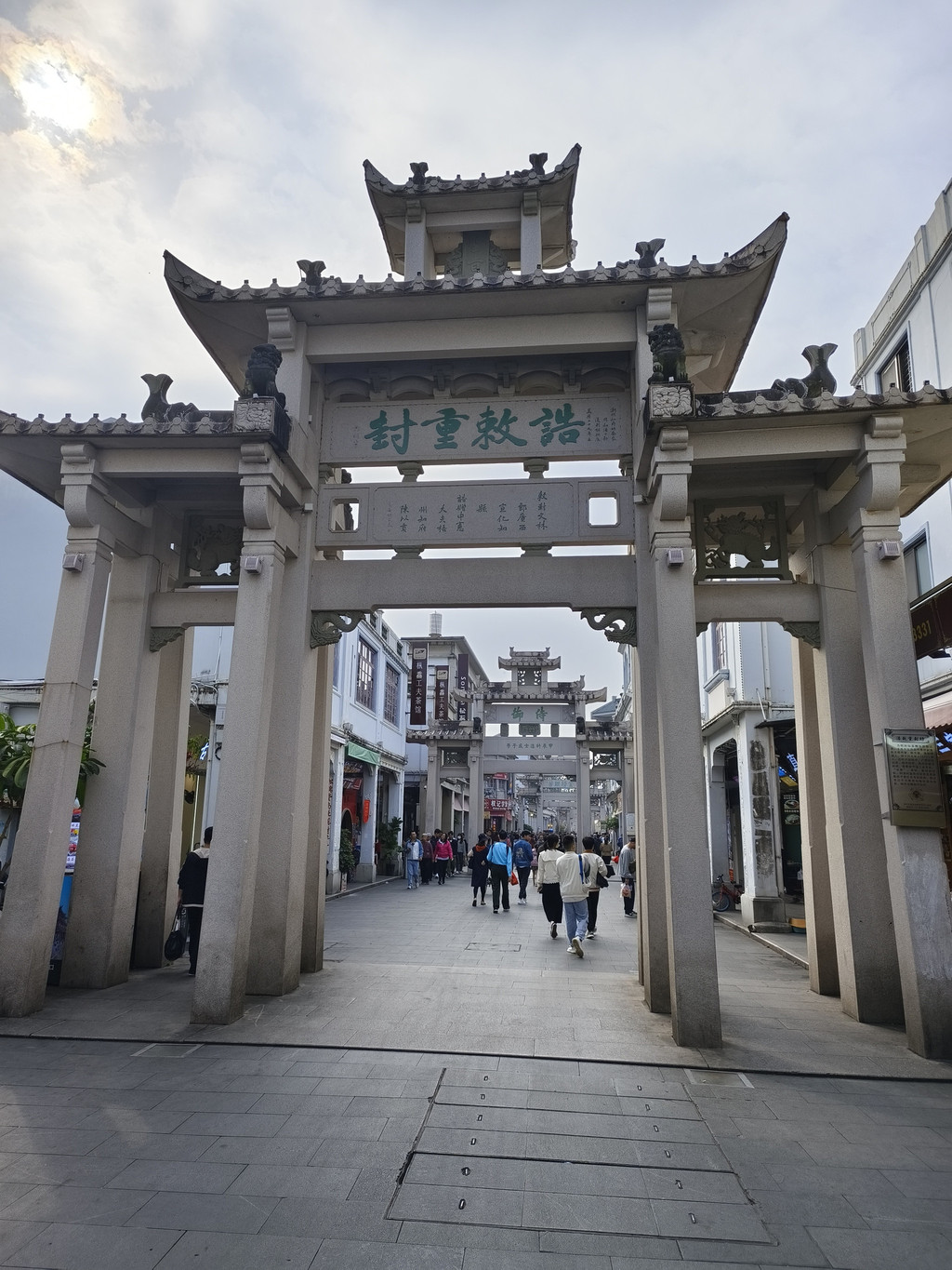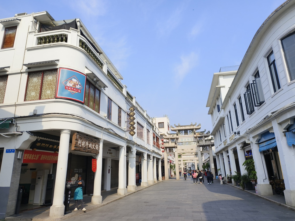 牌坊街是一条历史文化古街,由太平路、东门街组成,总长1948米,其中太平路1742米,东门街206米。这里牌坊、骑楼、商铺林立,特产、美食、文化融合,古色古香,别有韵味。