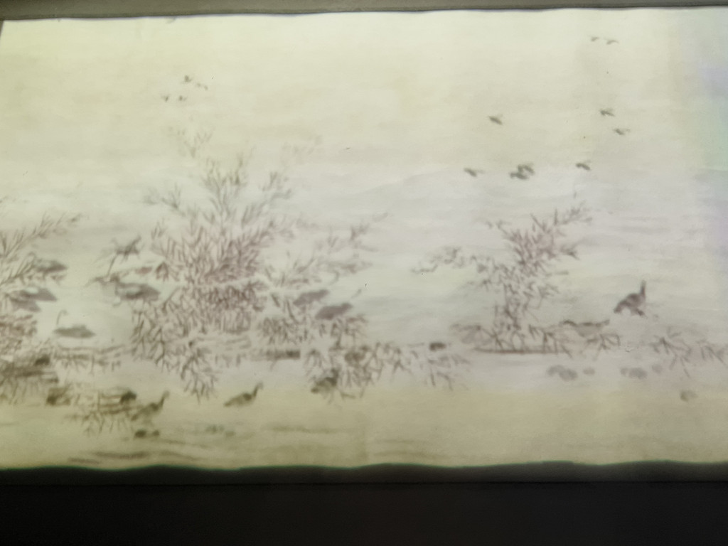 ↗元代佚名画家“平沙落雁图卷”。未展出原件,以电子版呈现。