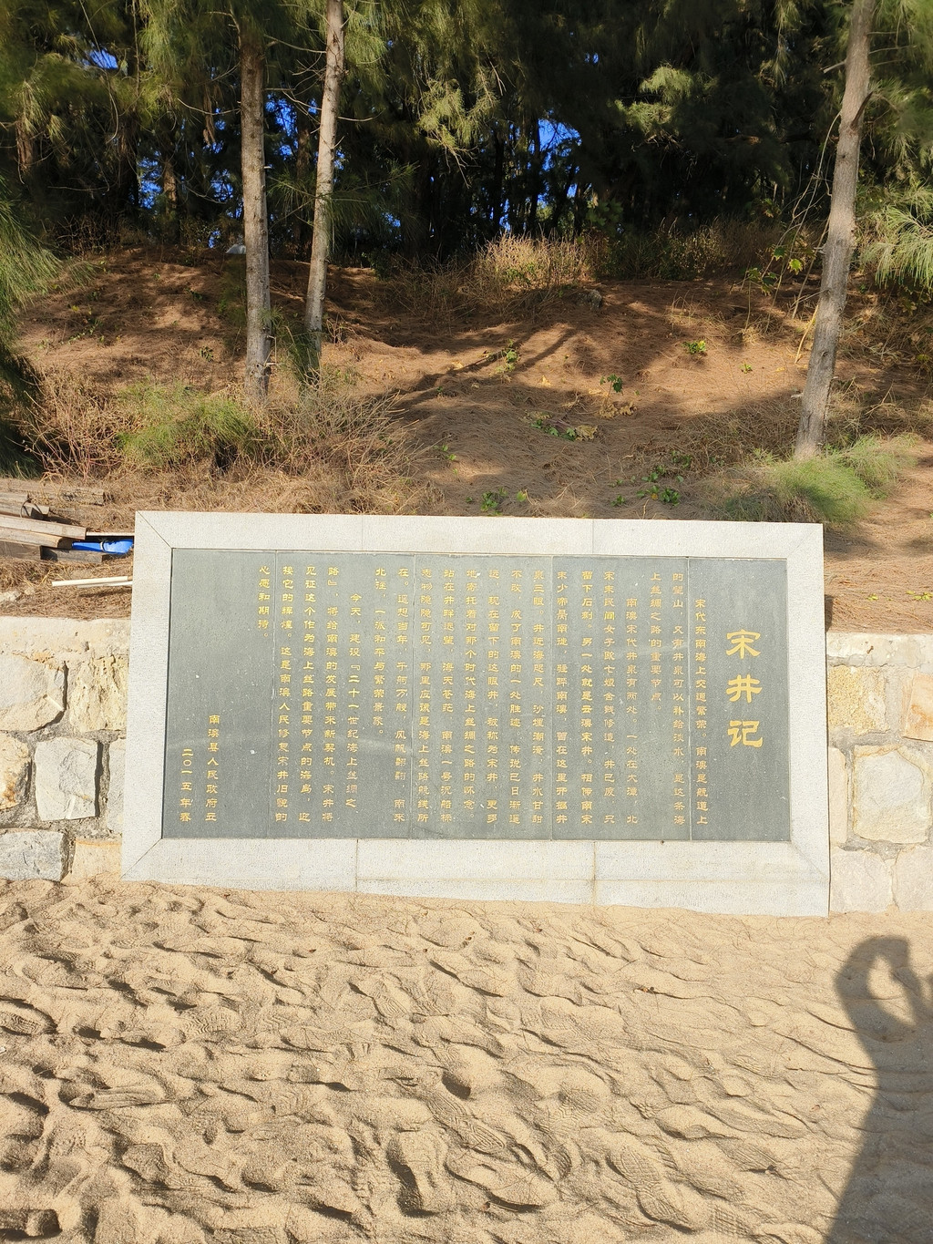 宋井来历:南宋景炎元年(1276年)5月,因元兵进迫,礼部侍郎陆秀夫和大将张世忠等护宋少帝退经南澳,驻跸澳前村,开挖供皇帝、大臣和将士兵马饮用的龙井、虎井、马井三口宋井。后被海潮淹没,时隐时现。清光绪十五年(1889)复出,但仅存一口。