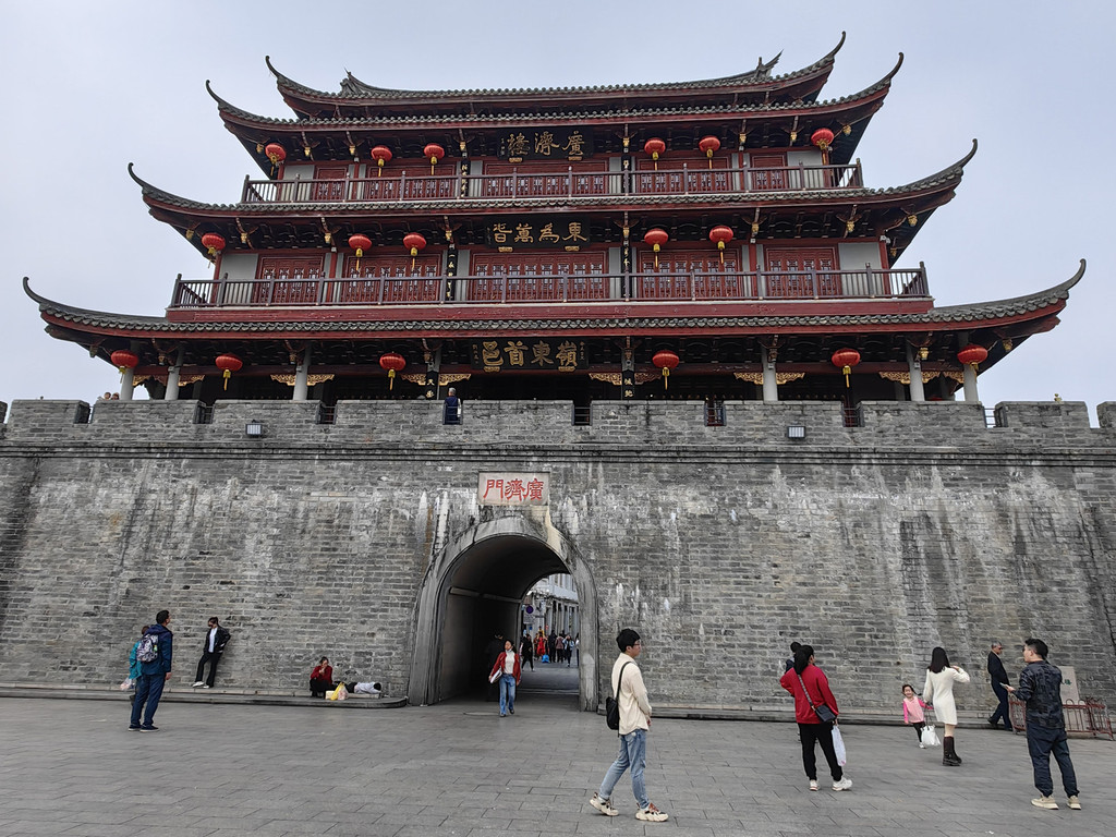 广济门城楼,原称“广济楼”,也称“韩江楼”,俗称“东门楼”,始建于明洪武三年(1370),是一座宫殿式三层歇山顶阁楼,潮州古城七座门楼中最巍峨壮观的一座。