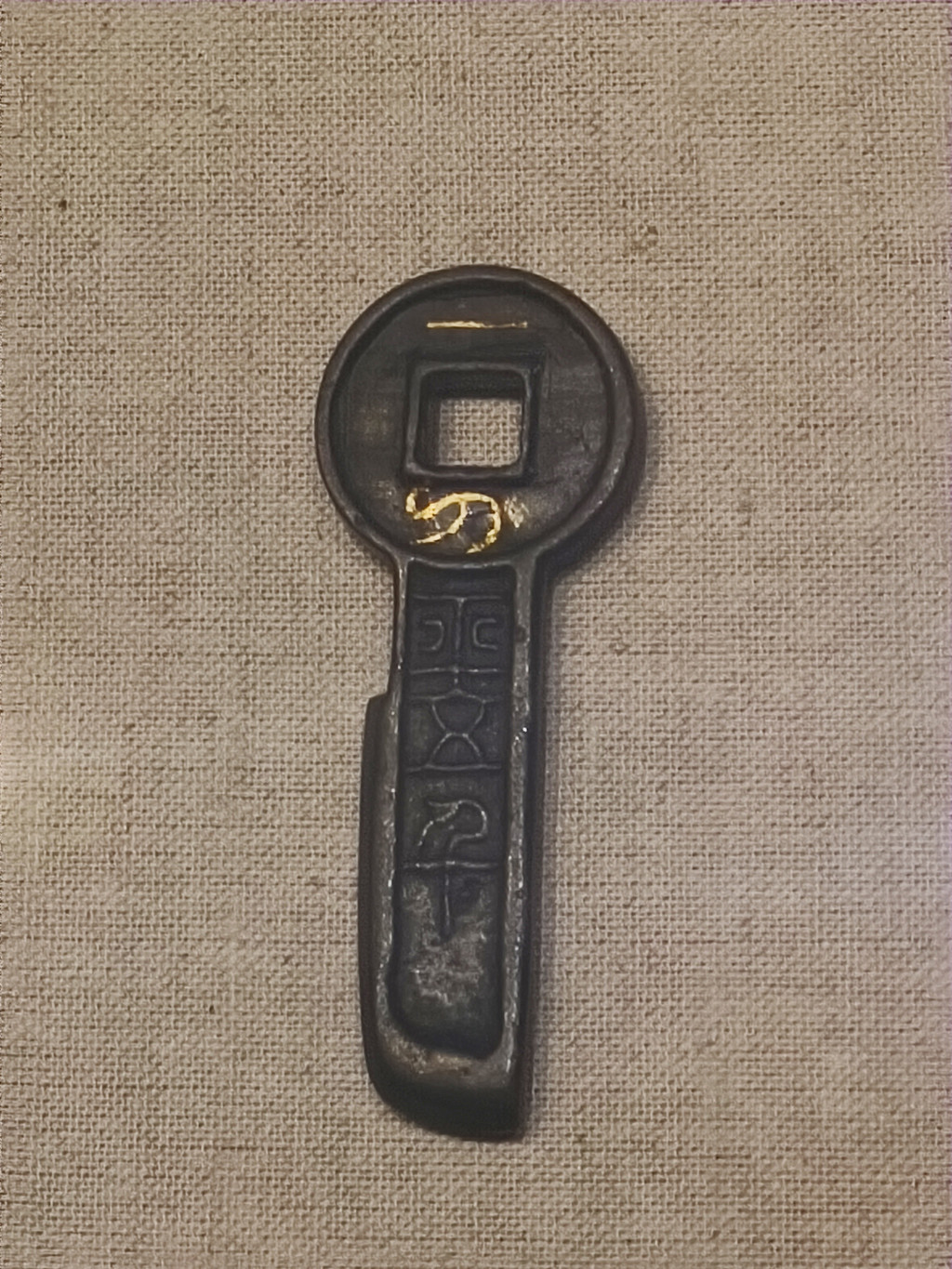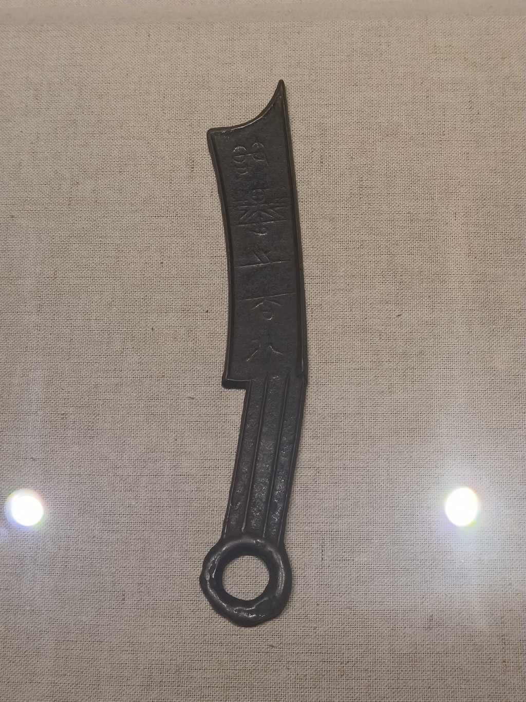 ↗“一刀平五千”刀币(新朝)。面值最大的金属货币,虚值大钱之王。